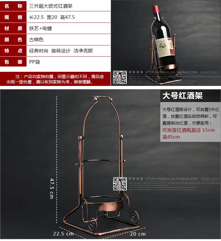 1.5L5L大型紅酒架創意葡萄酒架子 5升大瓶裝五升歐式擺件3L酒瓶架1.5L