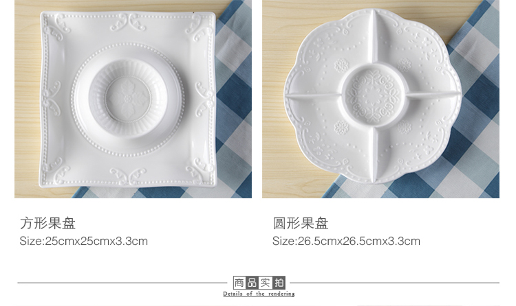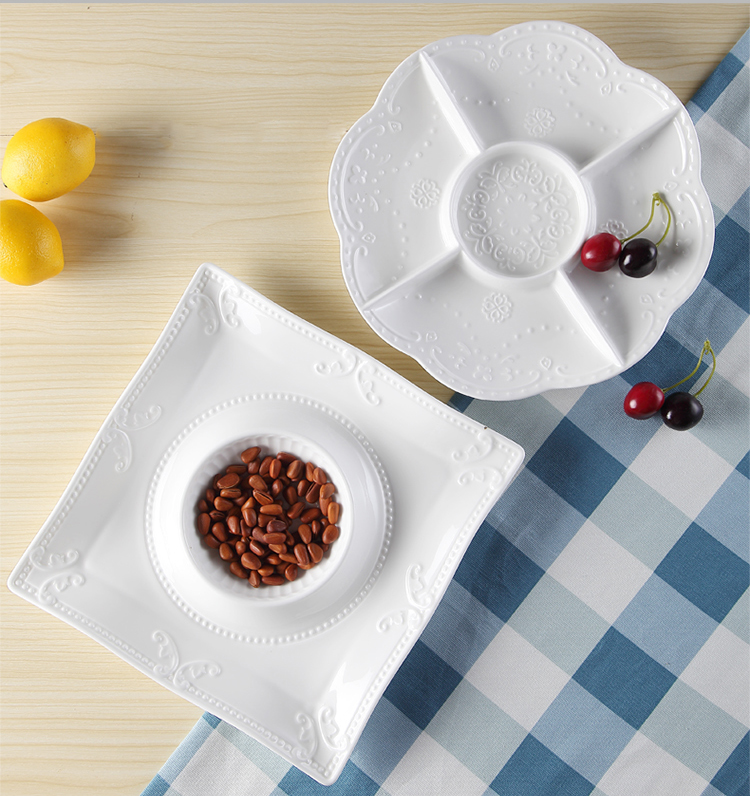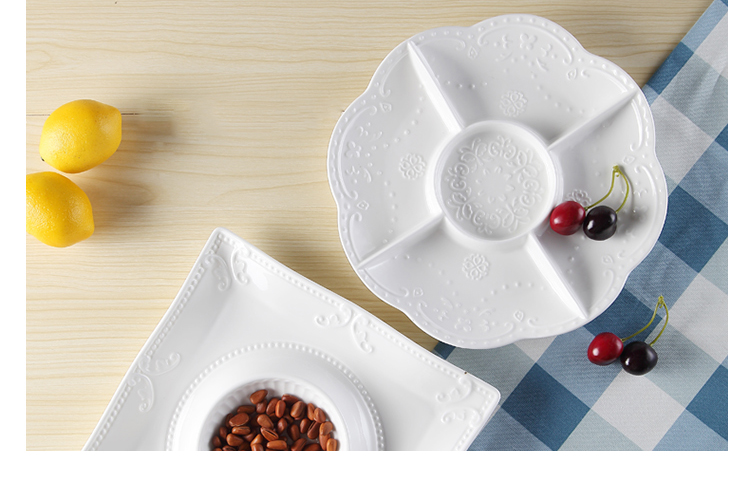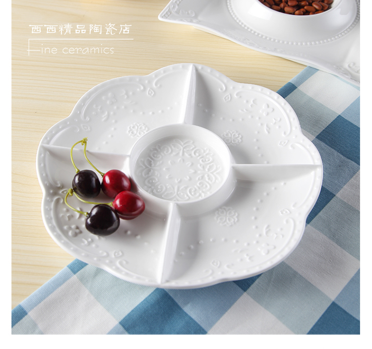 圓果盤26.5x3.3cm西餐酒店特色餐具 陶瓷分隔果盤 甜品糖果零食拼盤 點心糕點擺盤
