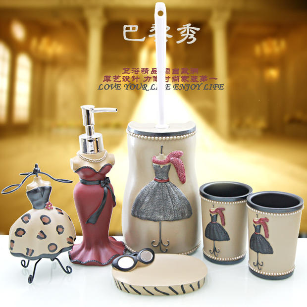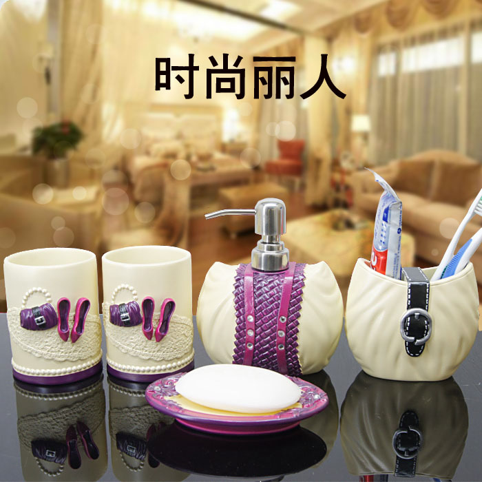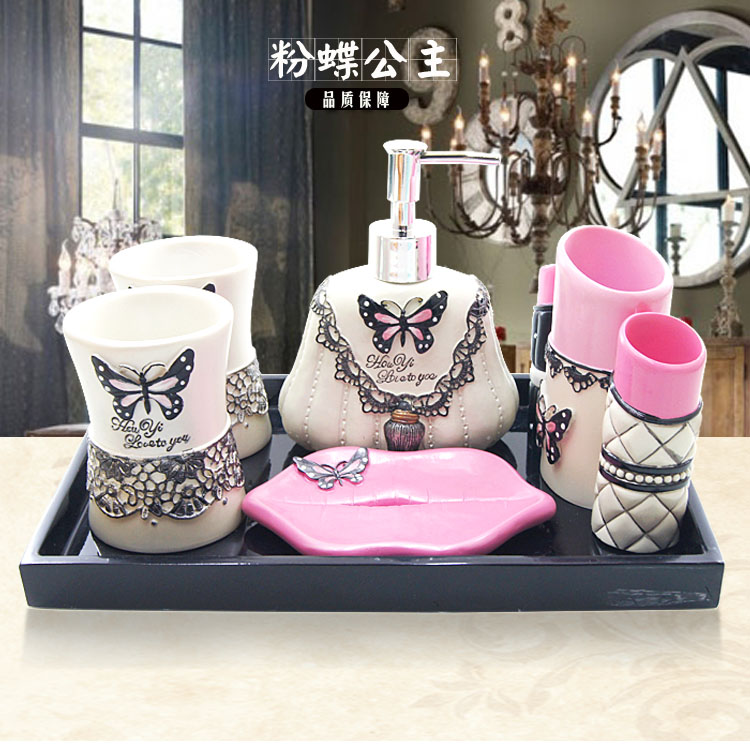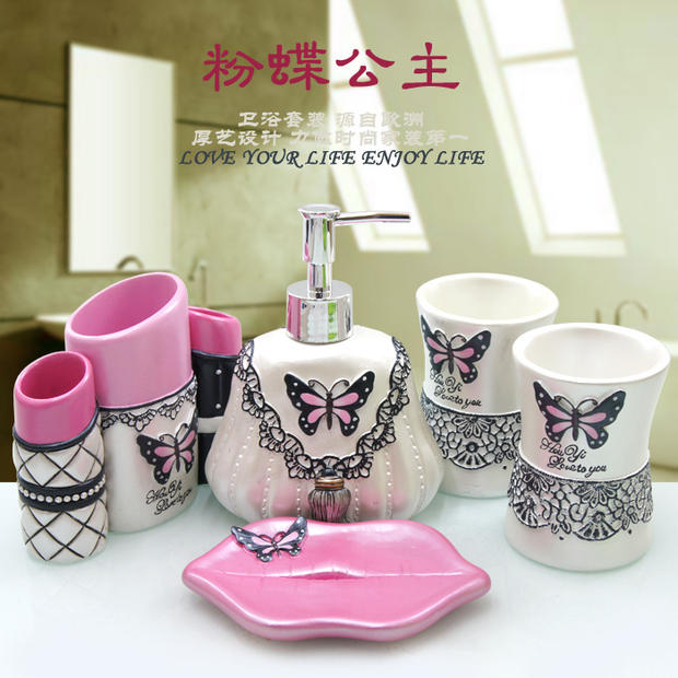 粉蝶公主(實物略灰)高檔樹脂衛浴五件套洗漱套裝衛生間家居用品擺件洗浴新婚禮物
