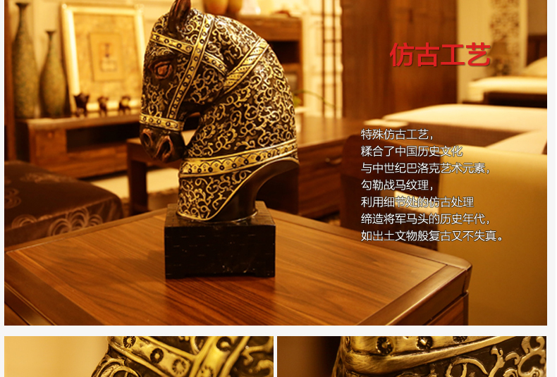 限量版小號將軍馬頭開業招財商務喬遷送禮電視柜裝飾品歐式創意馬頭擺件實用家居工藝
