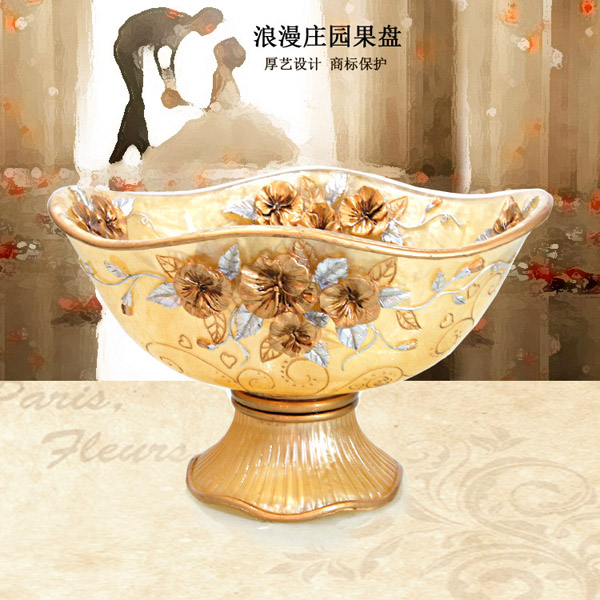 明黃色歐式果盤客廳茶幾擺件水果盤高檔樹脂果盤田園大號水果盤
