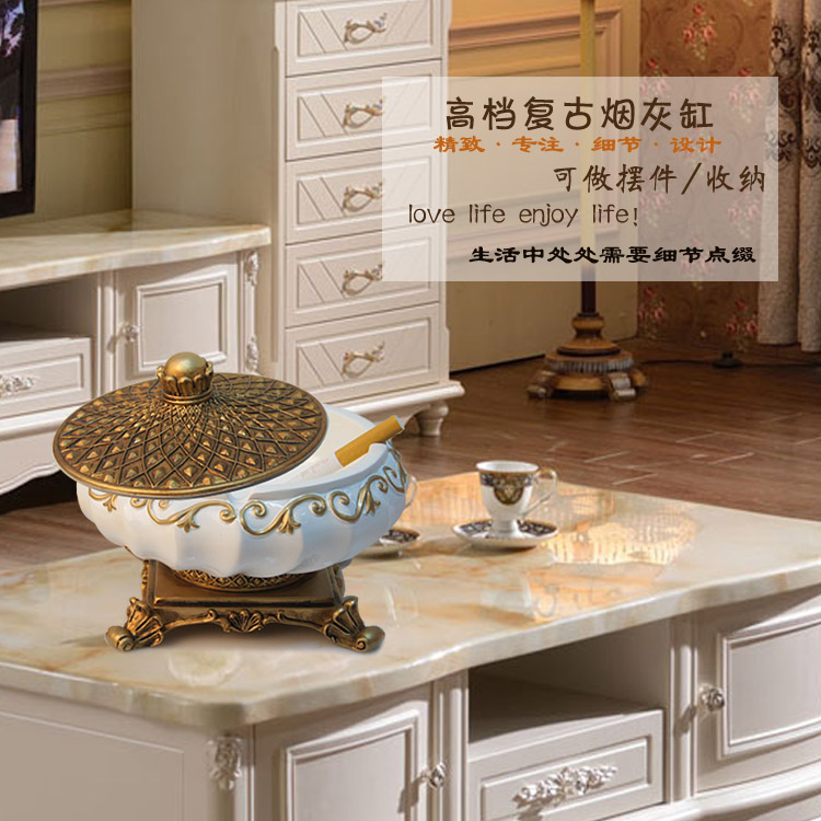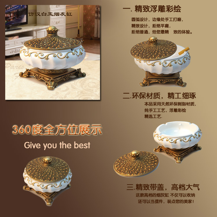 乳白色帶蓋樹脂裝飾煙灰缸歐式復古個性創意裝飾品時尚家居茶幾擺件煙缸