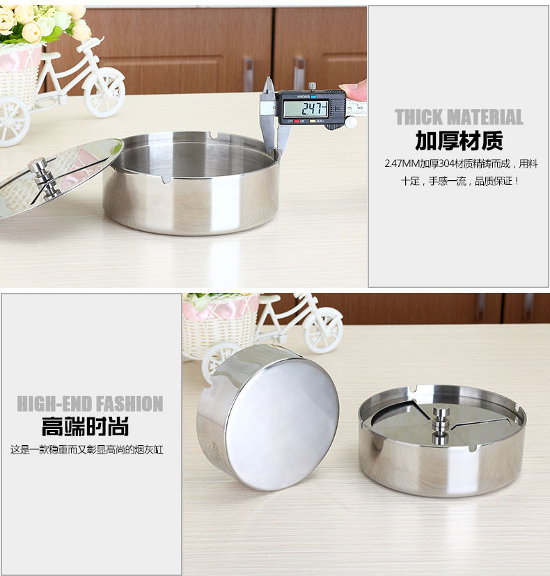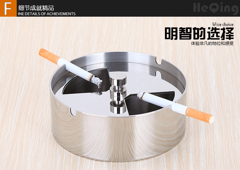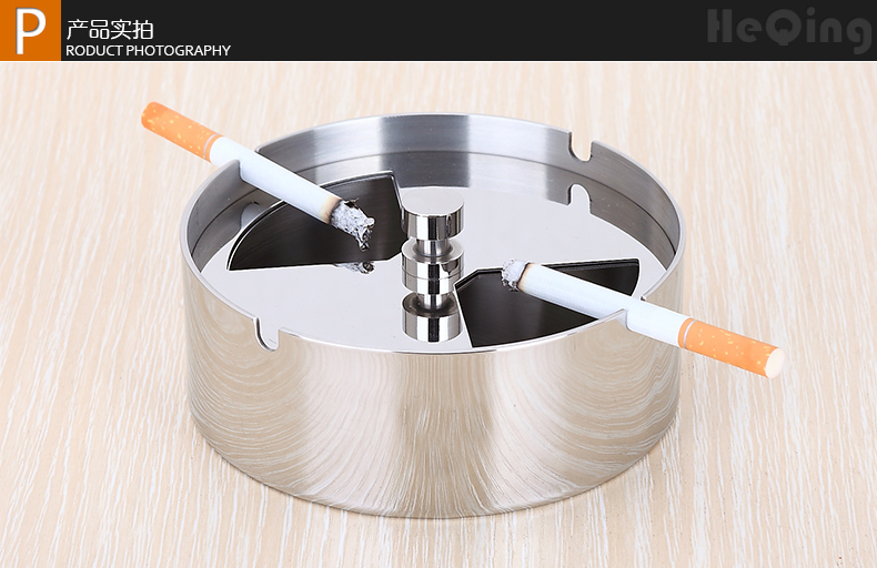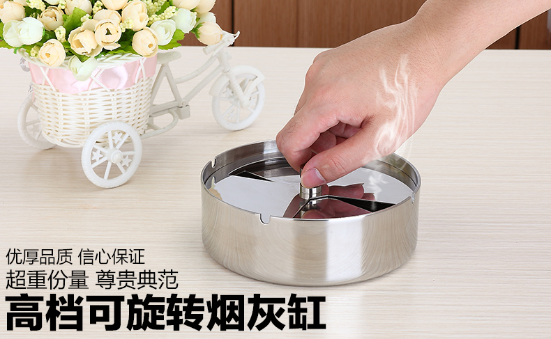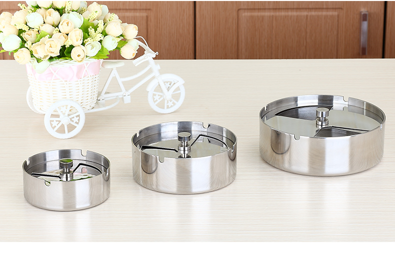 中號不銹鋼防風煙灰缸帶蓋子高檔旋轉時尚創意個性擺件生日禮物送男友