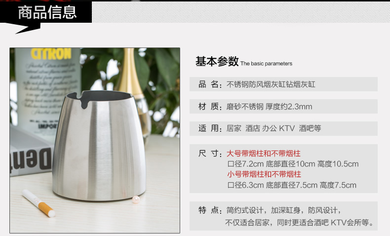 大號煙盅家居擺件收納防風不銹鋼煙灰缸 創意個性時尚歐式煙盅禮物送男友