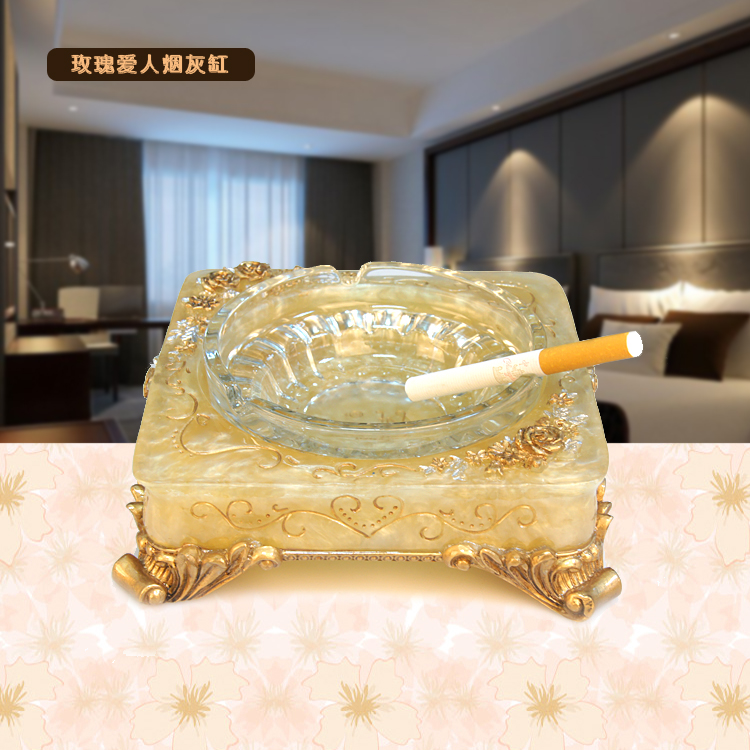 三色堇仿古居家煙灰缸創意歐式煙灰缸樹脂高檔時尚煙灰缸新婚茶幾擺件煙灰缸