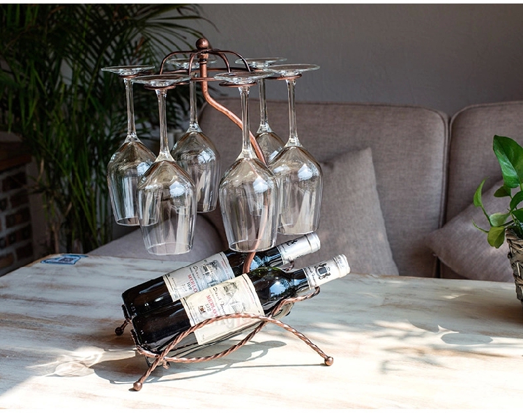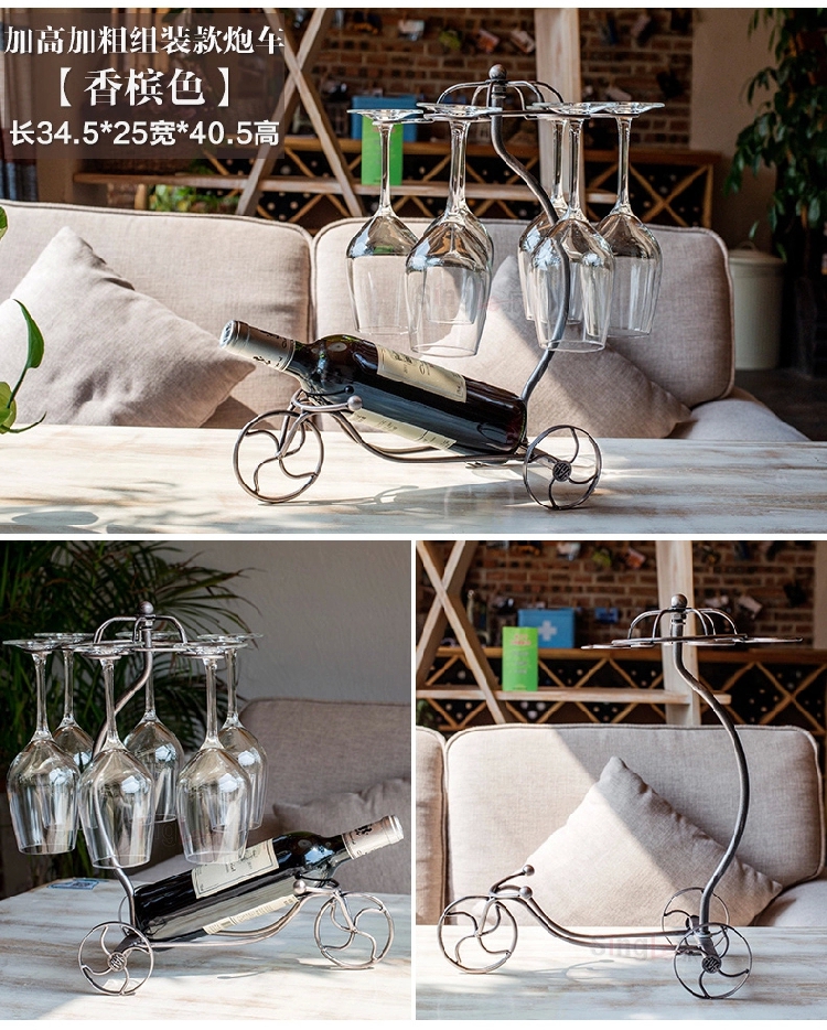 WR02605 沙灘椅雙用酒架 古銅色鐵藝復古紅葡萄酒架子創意歐式紅酒杯架咖啡廳酒吧酒莊餐廳擺件