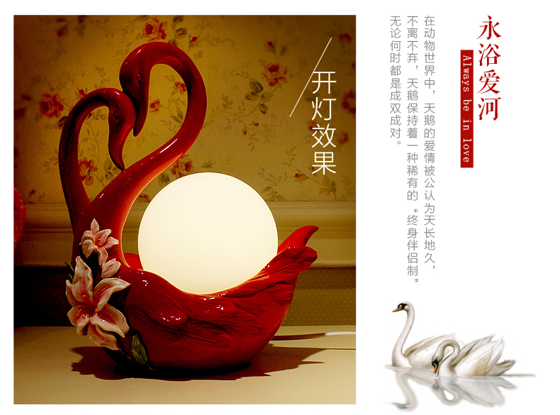 喜事成雙【一對紅色】創意結婚禮物閨蜜新婚慶天鵝臺燈婚禮實用送禮裝飾品擺件高檔禮品
