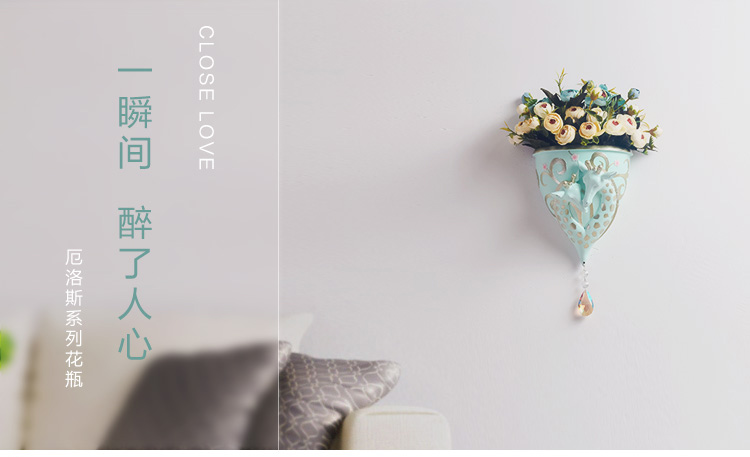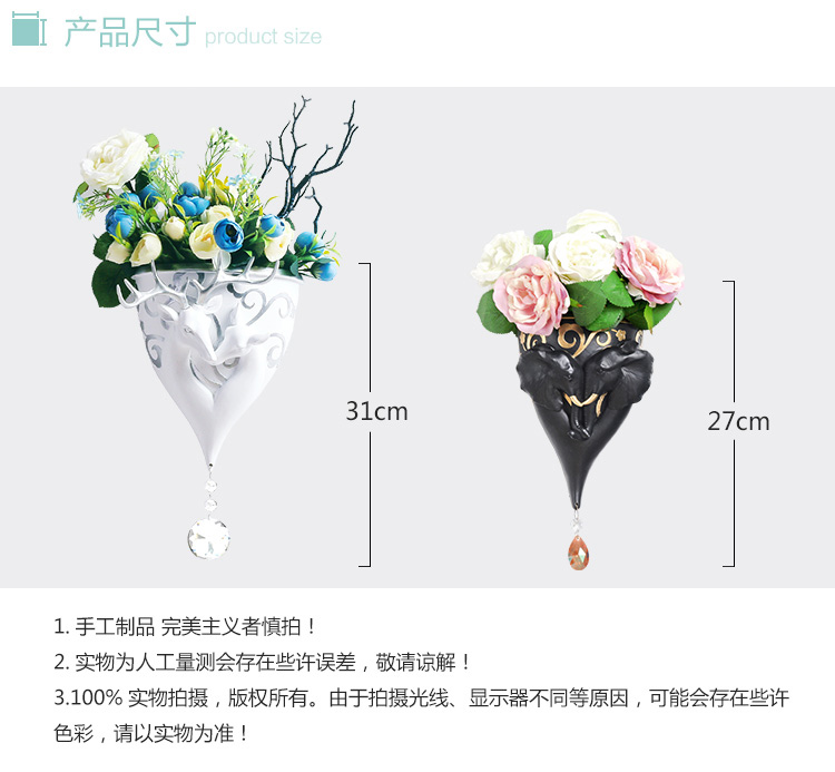 米白色創意美式鄉村墻壁裝飾仿真花壁掛花器組合客廳會所墻飾喬遷禮