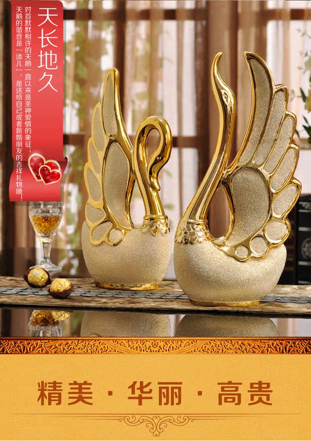 小號歐式瓷器創意家居飾品客廳臥室電視柜裝飾小飾品結婚禮物天鵝擺件