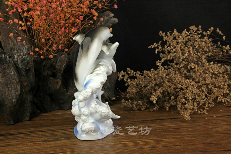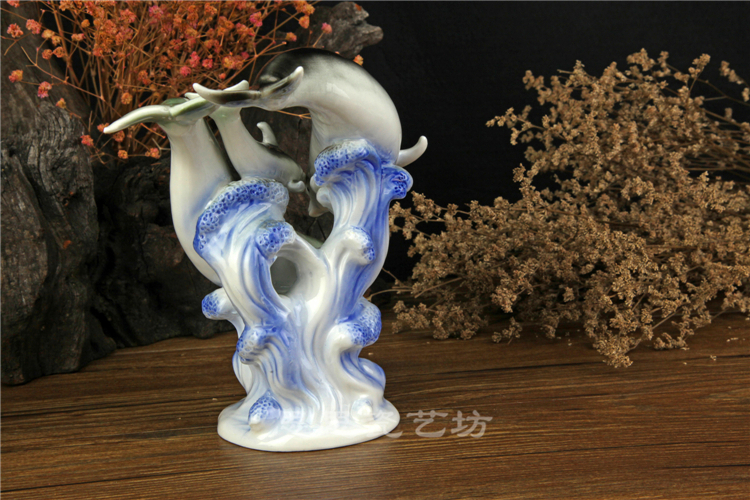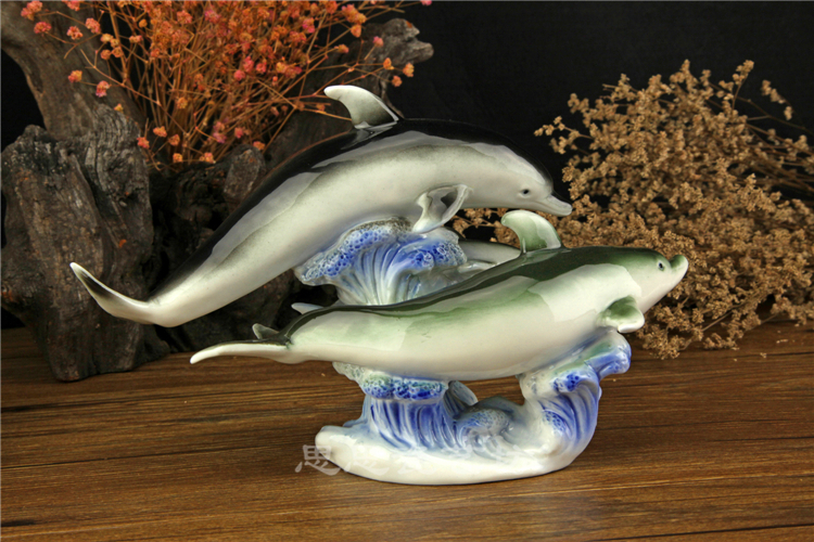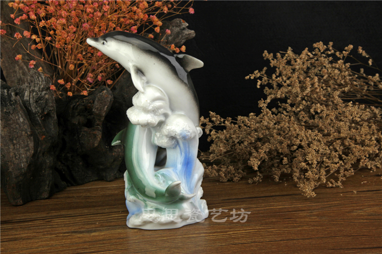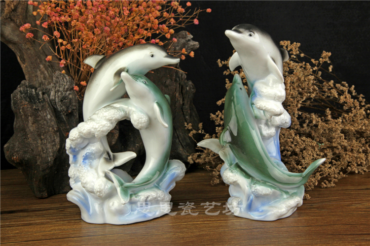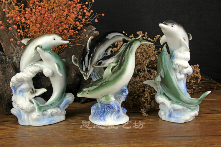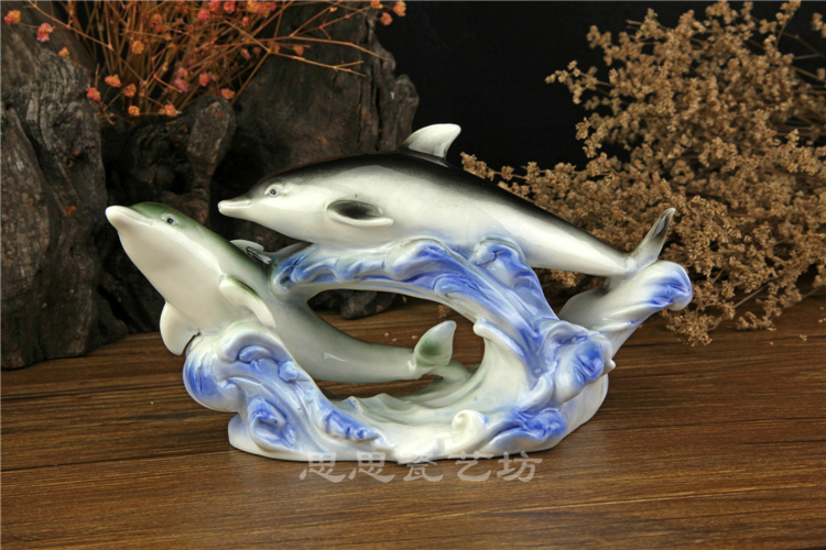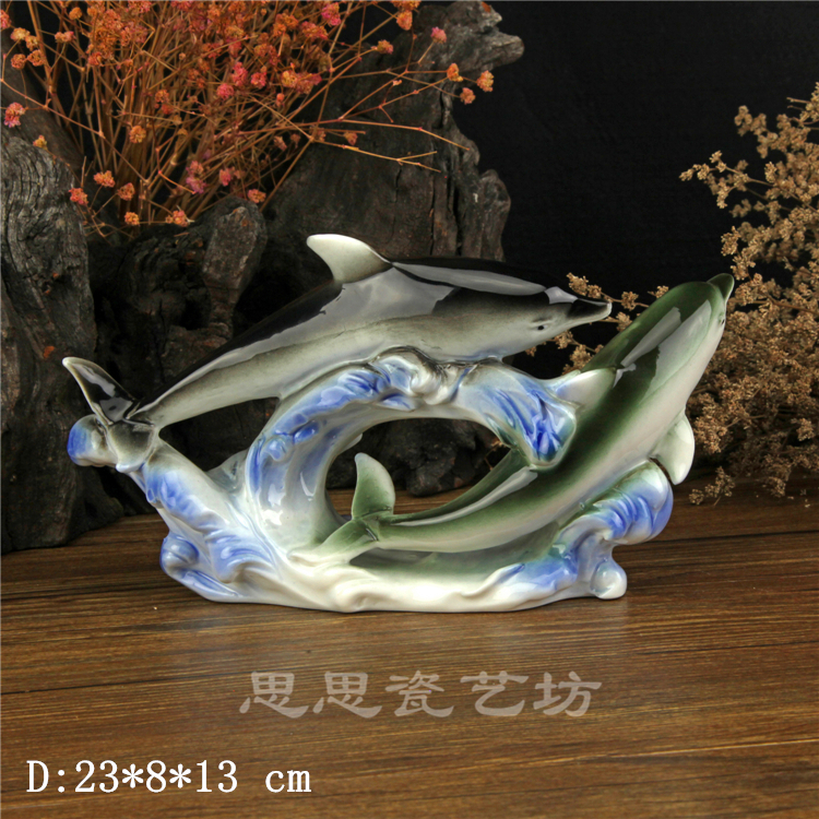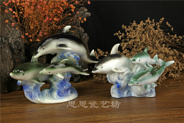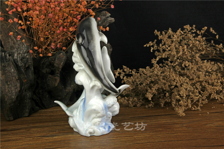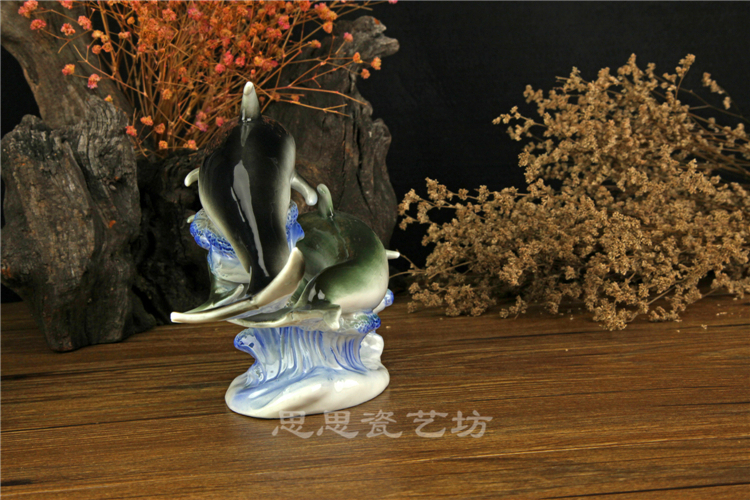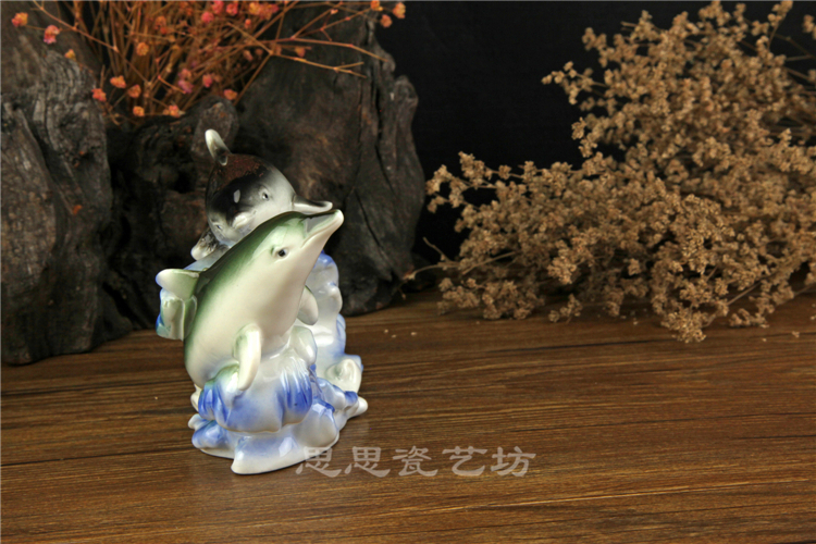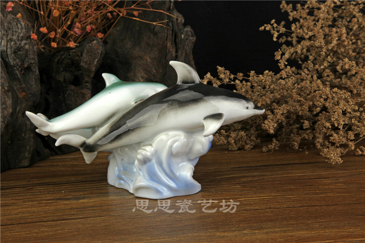 C思思陶瓷擺件動物海豚桌面工藝品電視柜玄關書房創意結婚生日禮品
