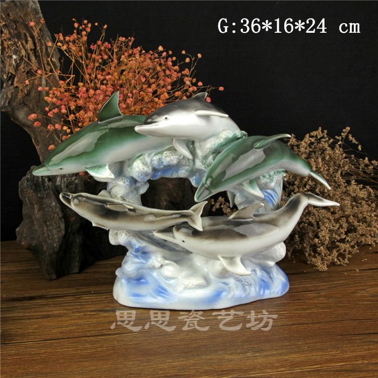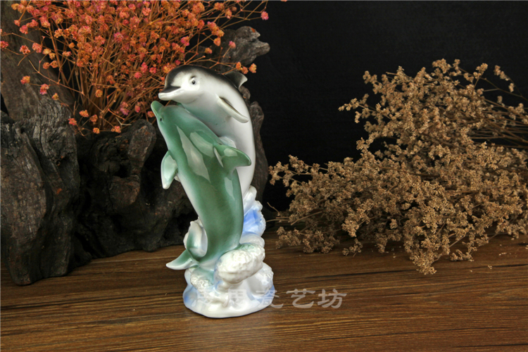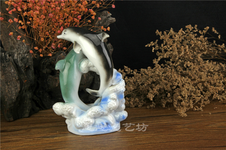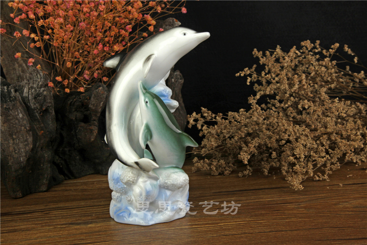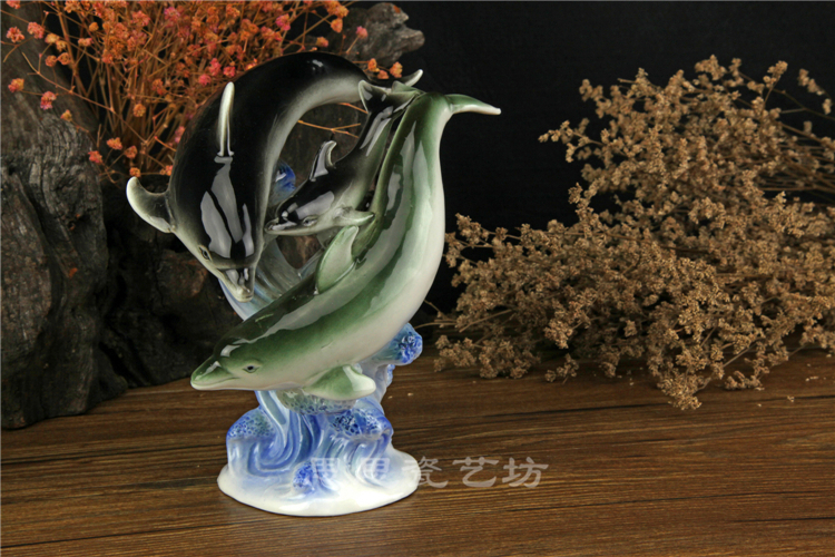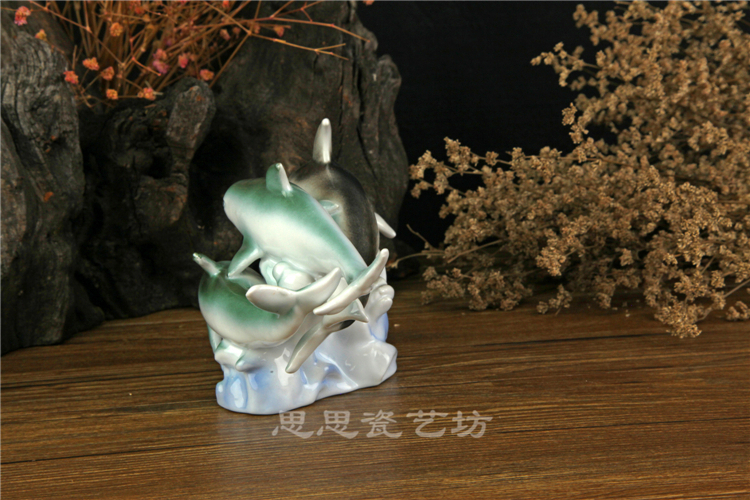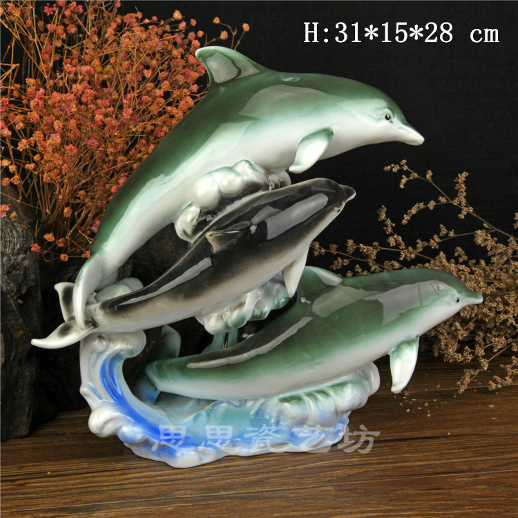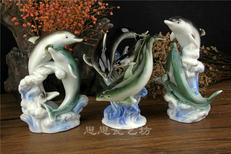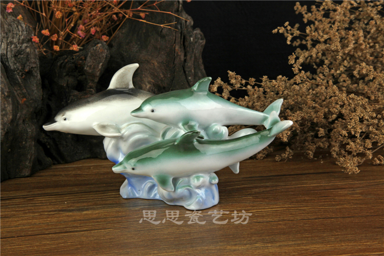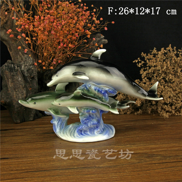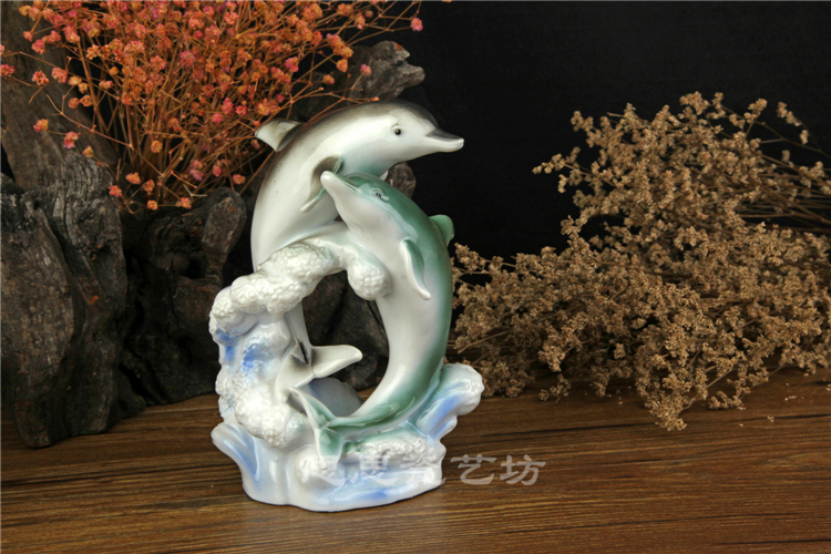C思思陶瓷擺件動物海豚桌面工藝品電視柜玄關書房創意結婚生日禮品