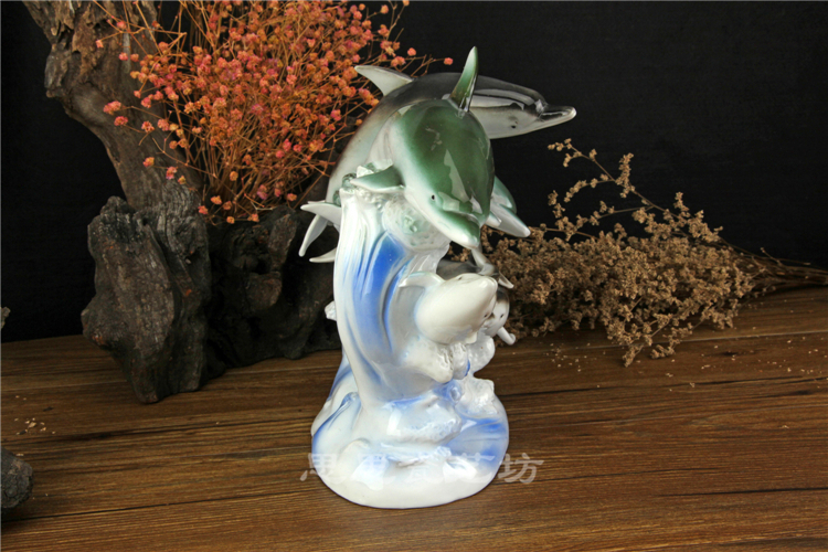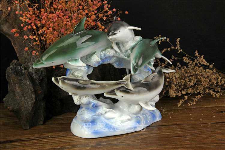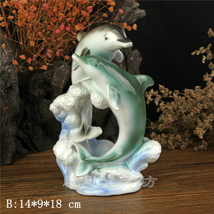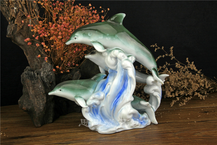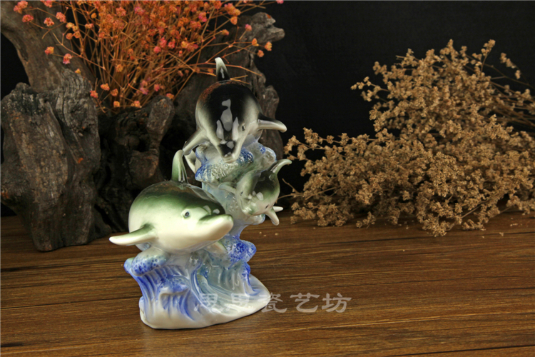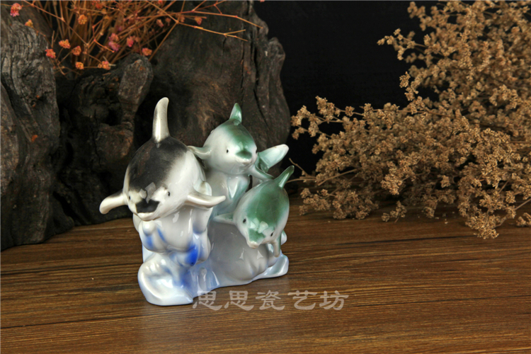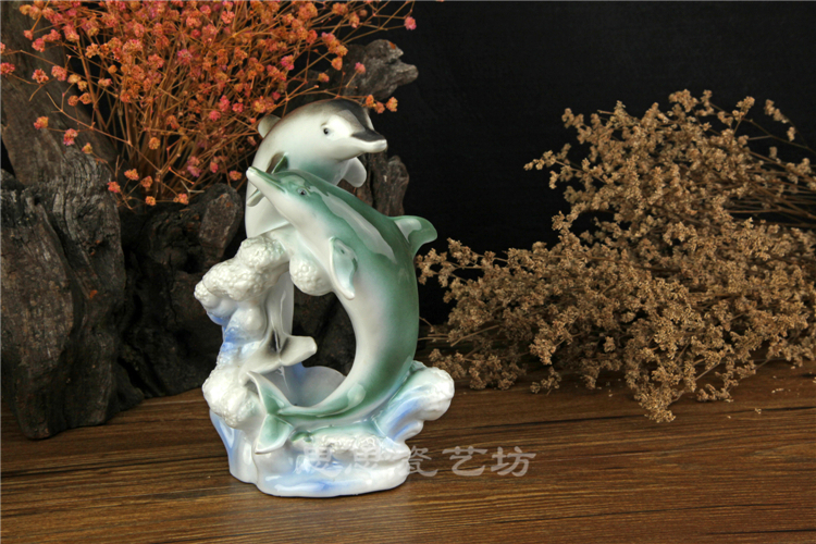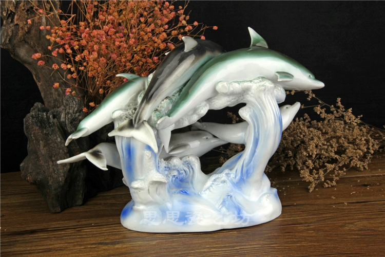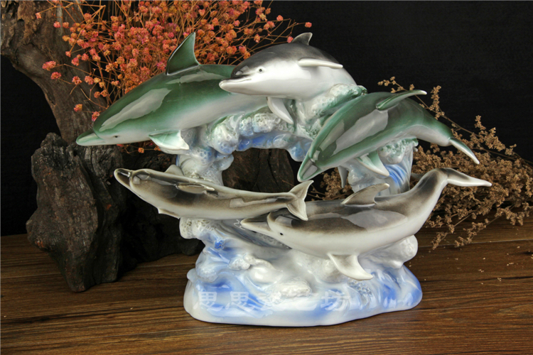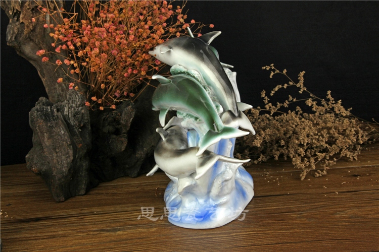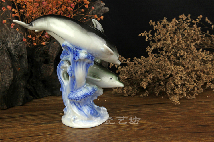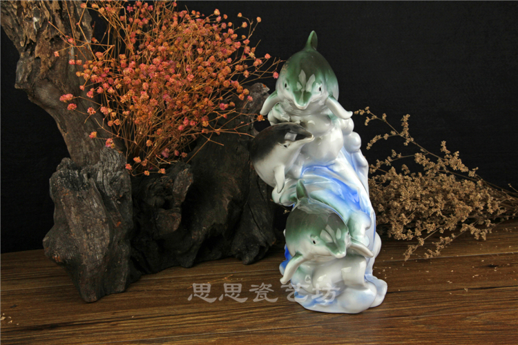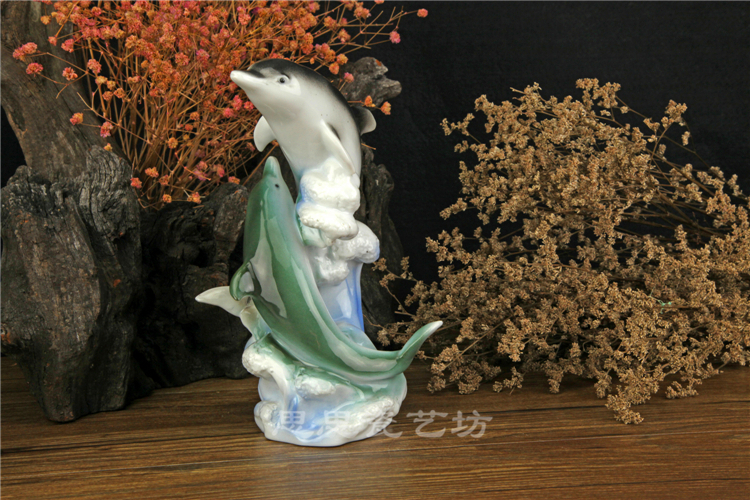 C思思陶瓷擺件動物海豚桌面工藝品電視柜玄關書房創意結婚生日禮品