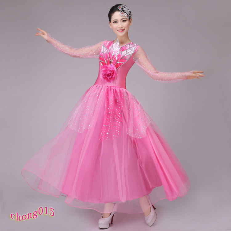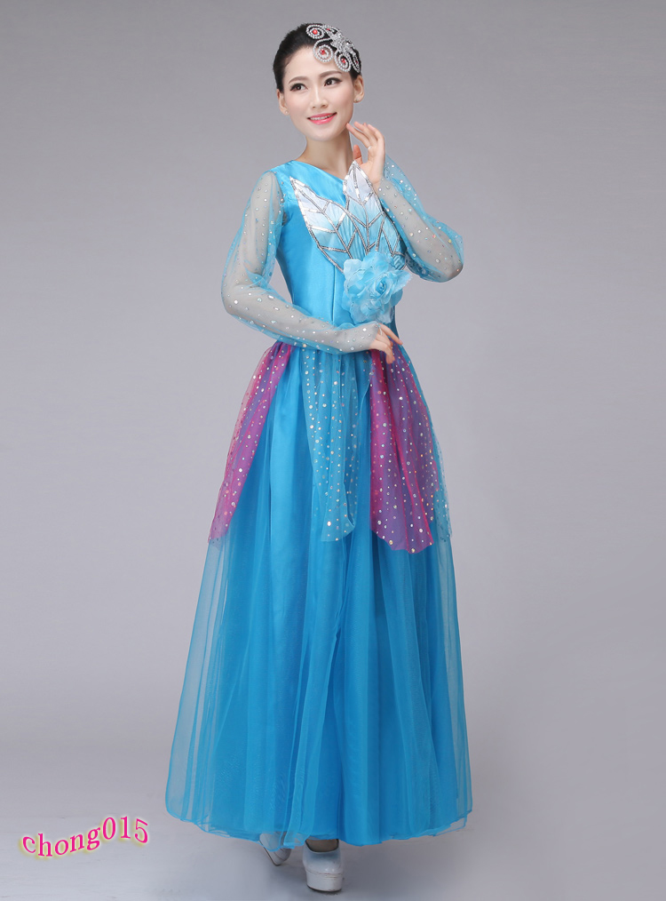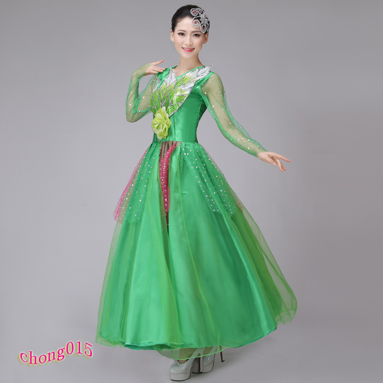 裙擺540度S新款連衣裙民族舞蹈服女裝大合唱長裙舞臺服開場舞大擺裙