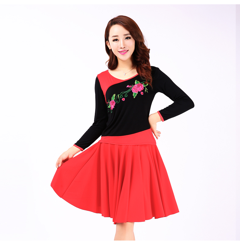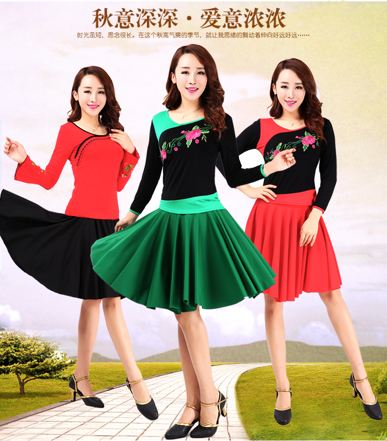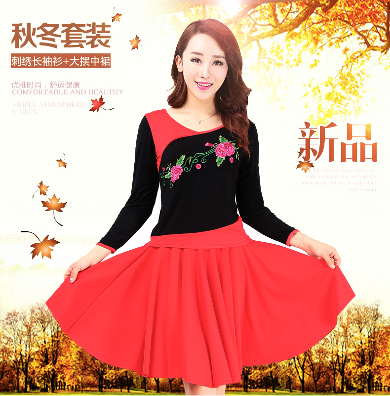 紅色(套裝)L新款廣場舞服裝套裝廣場舞裙兩件套半身裙演出服大擺裙