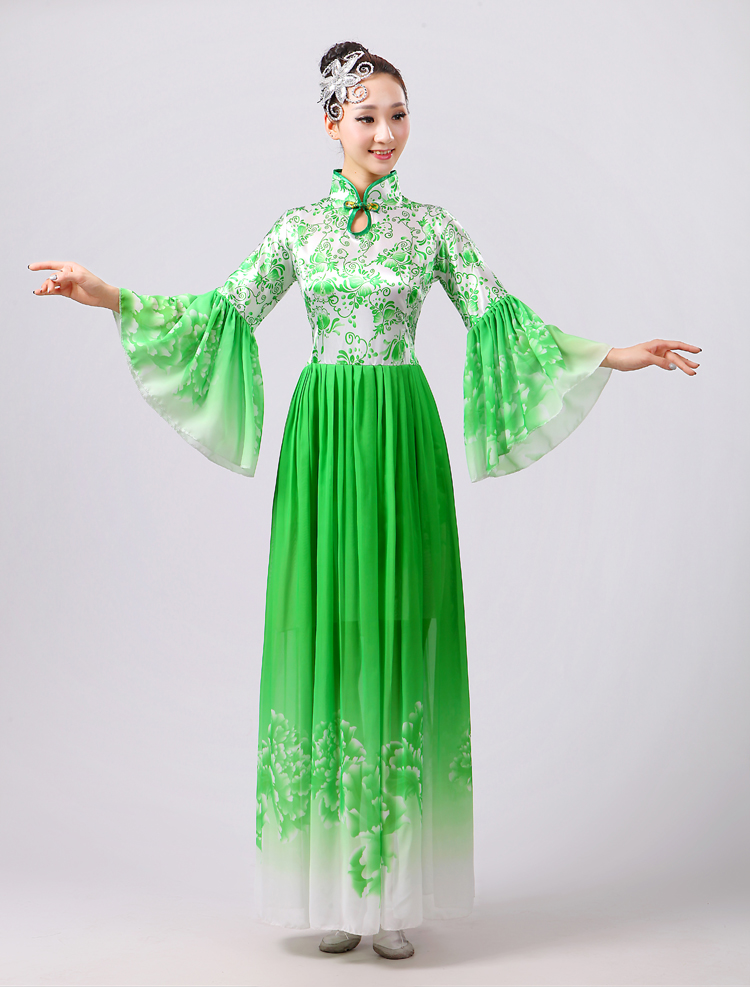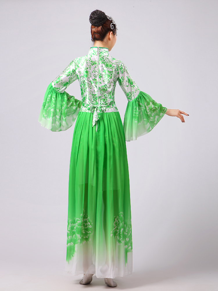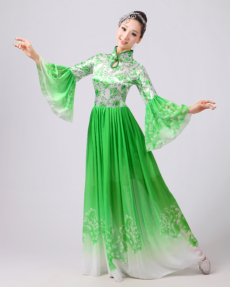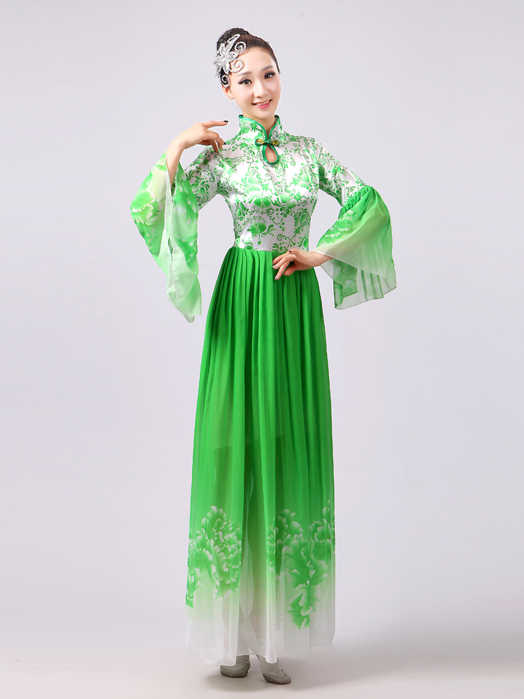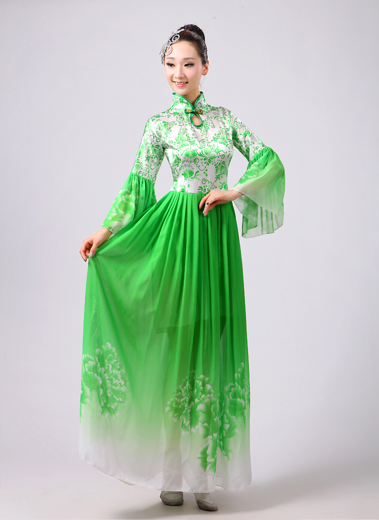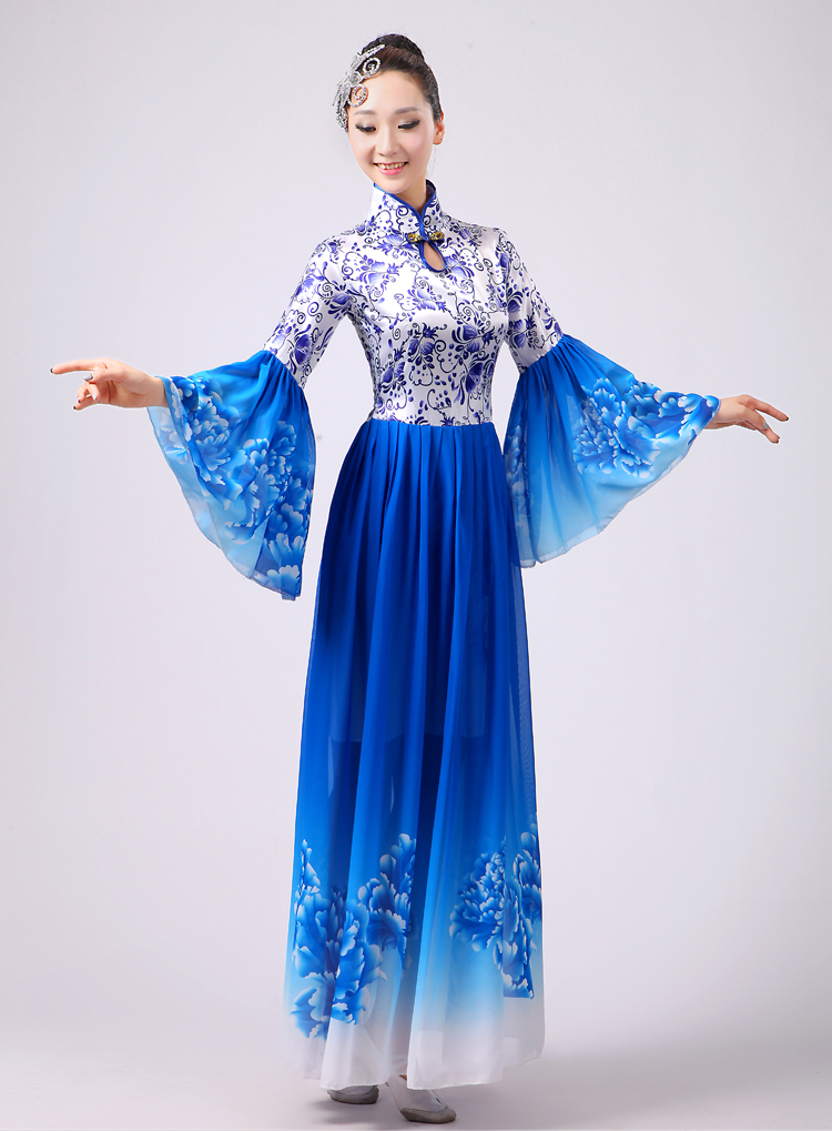 玫紅色S胸圍2.62016新款合唱服演出服夏季女民族開場舞大合唱大擺裙廣場舞青花瓷
