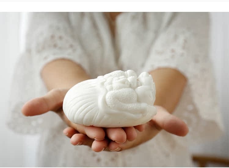 進寶貔貅小院 手工德化白瓷招財貔貅陶瓷擺件 功夫茶具茶道茶玩家居擺件