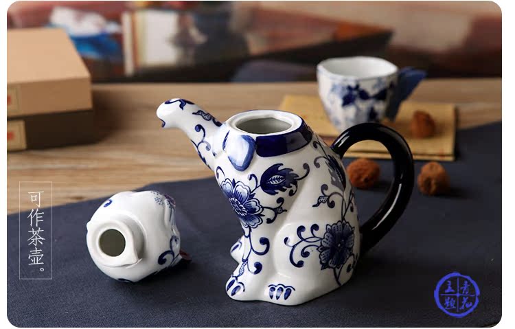 原創 青花瓷招財貓陶瓷茶壺 中式古典藝術家居裝飾品擺設