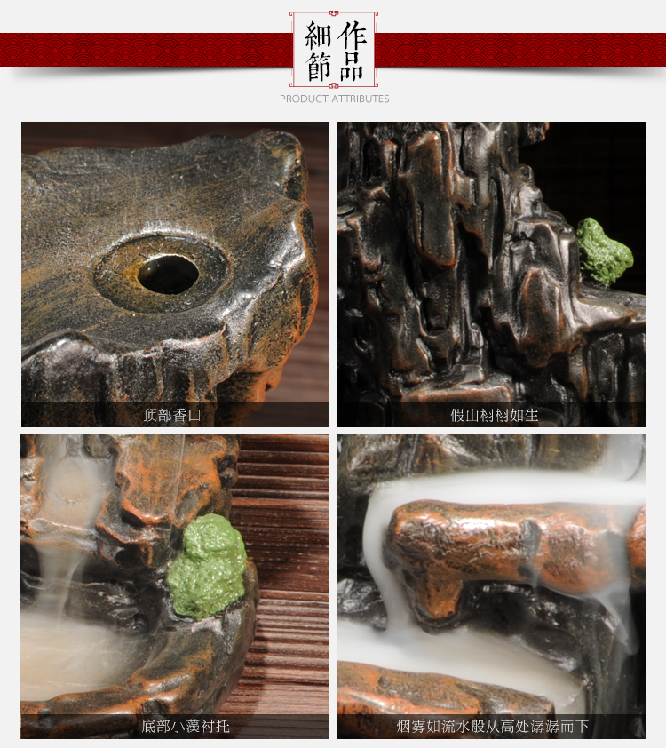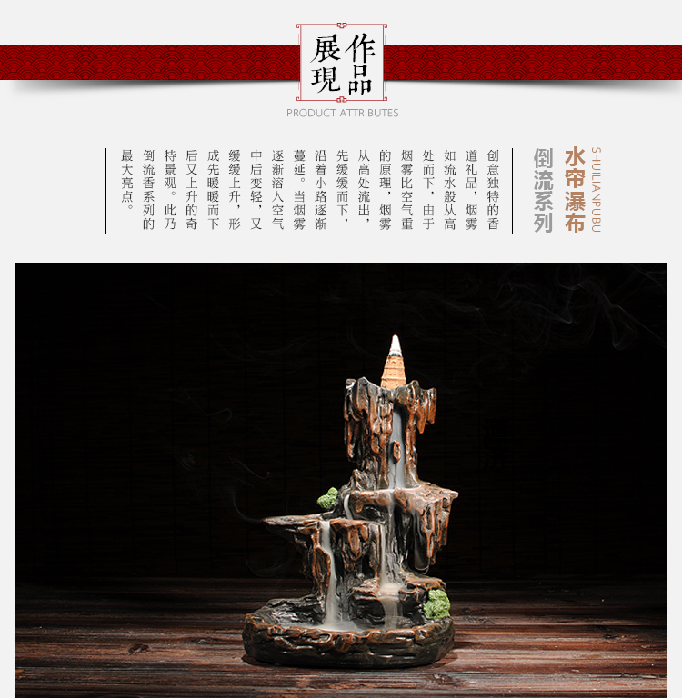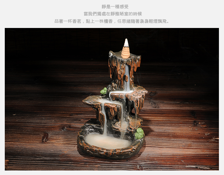 倒流香爐高山流水創意中式紫砂樹脂擺件茶道觀賞倒流香塔香檀香爐