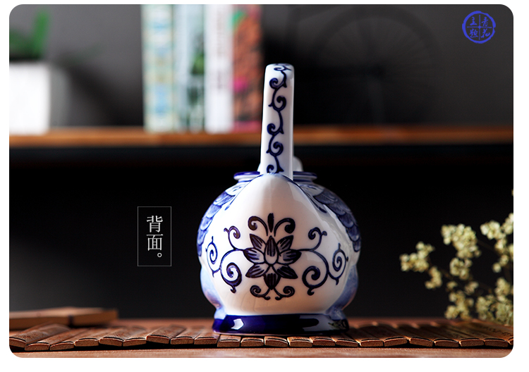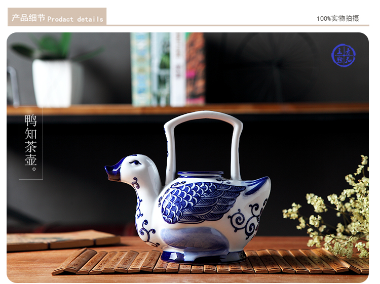 手繪青花瓷鴨子提梁茶壺 涼開水壺 中式家居古典藝術裝飾擺件