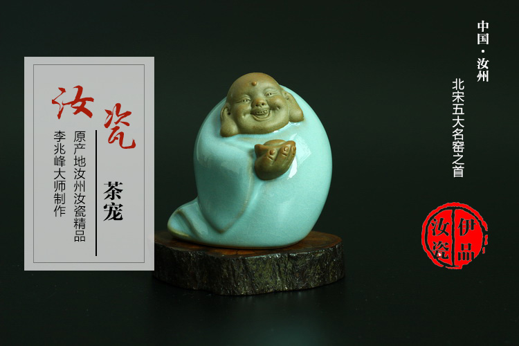 A茶寵汝州原產地汝瓷廷懷窯之子李兆峰天青釉茶寵擺件茶道汝窯可養開片