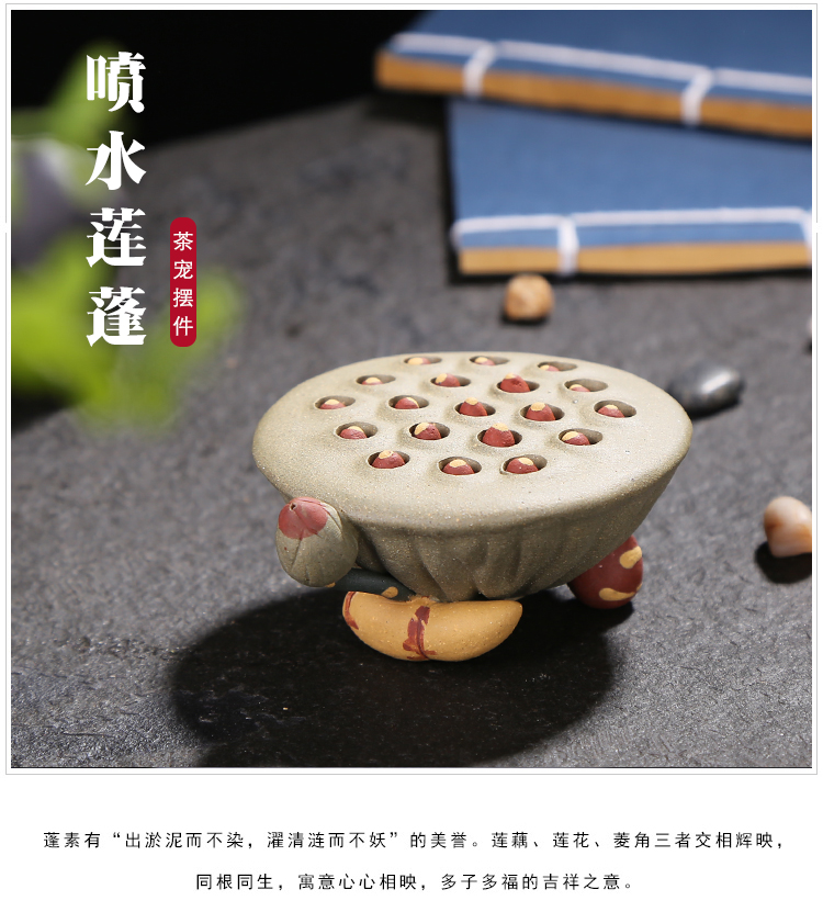 蓬蓮噴水茶寵宜興紫砂茶寵擺件 會噴水的茶玩 創意原礦泥精品手工蓮藕茶玩