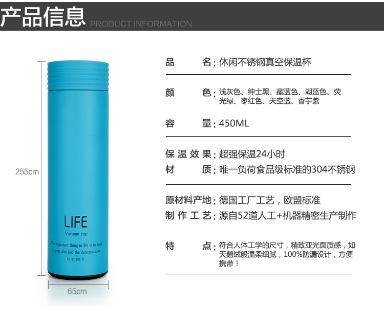 湖水藍志翔高檔保溫杯時尚男女士真空不銹鋼防漏大號水杯子情侶車載茶杯
