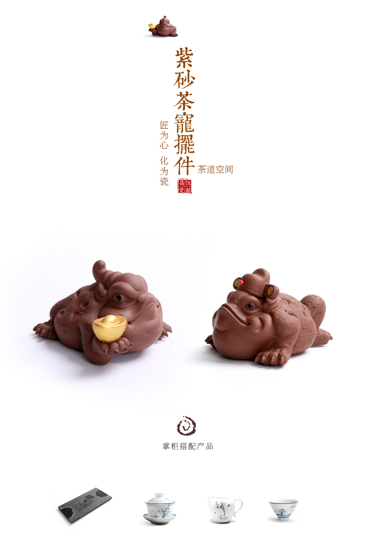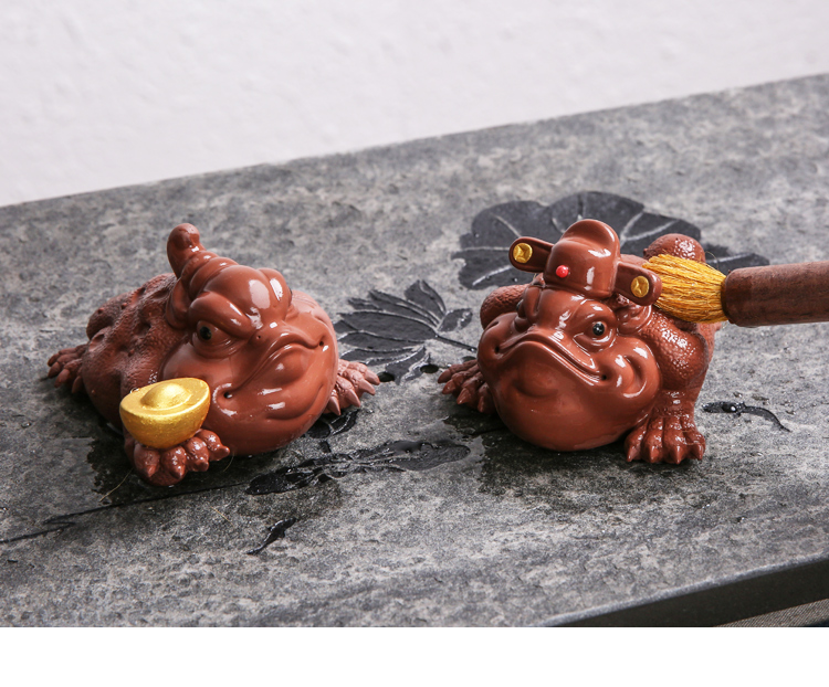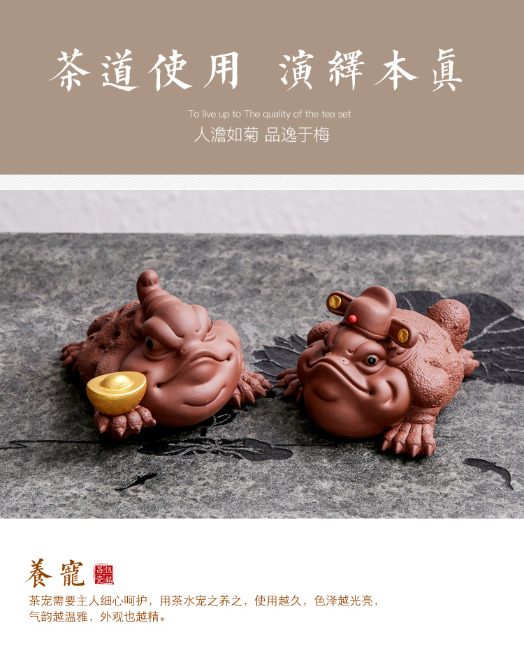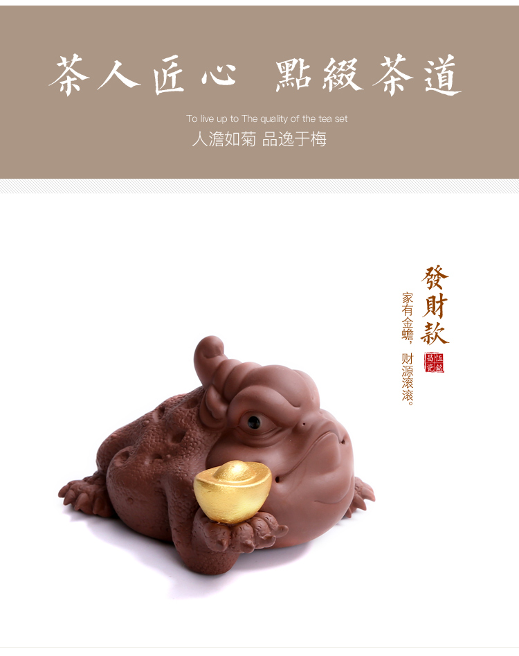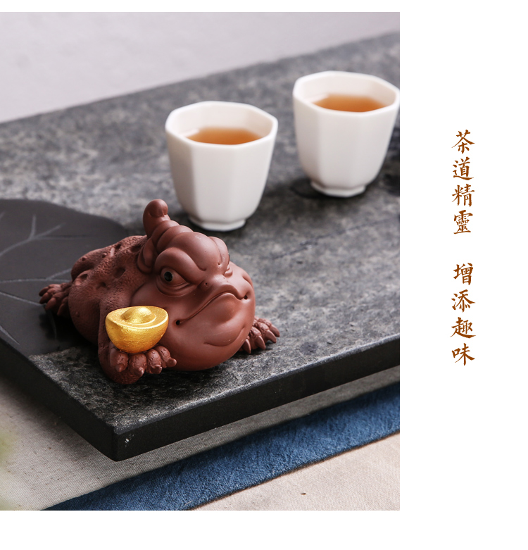 金蟾 發財精品紫砂三足金蟾擺件 創意升官發財茶盤茶玩功夫茶具茶道配件