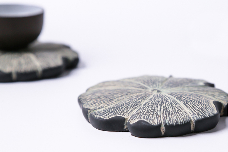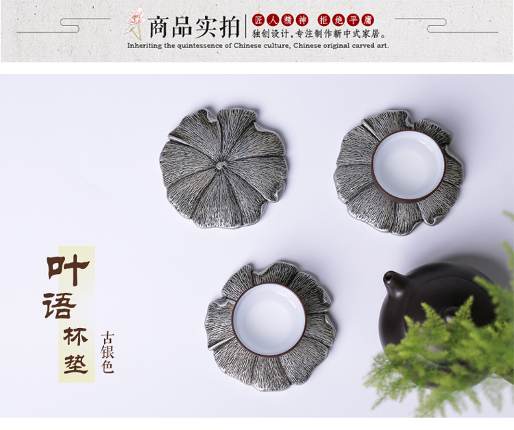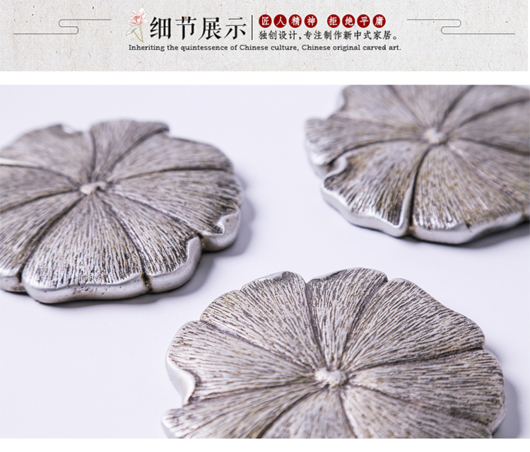 古銀色-一套4個新中式藝術功夫茶墊杯墊隔熱墊杯托組茶具茶道茶藝配件裝飾小擺件
