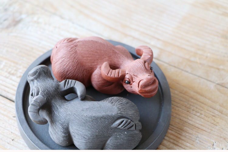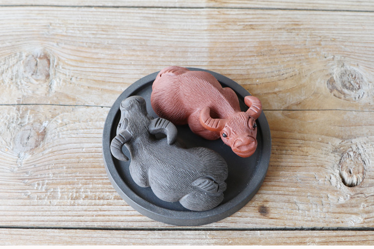 牛轉乾坤(茶擺件)宜興紫砂茶寵 牛轉乾坤水牛手工擺件動物生肖茶玩精品 招財辟邪