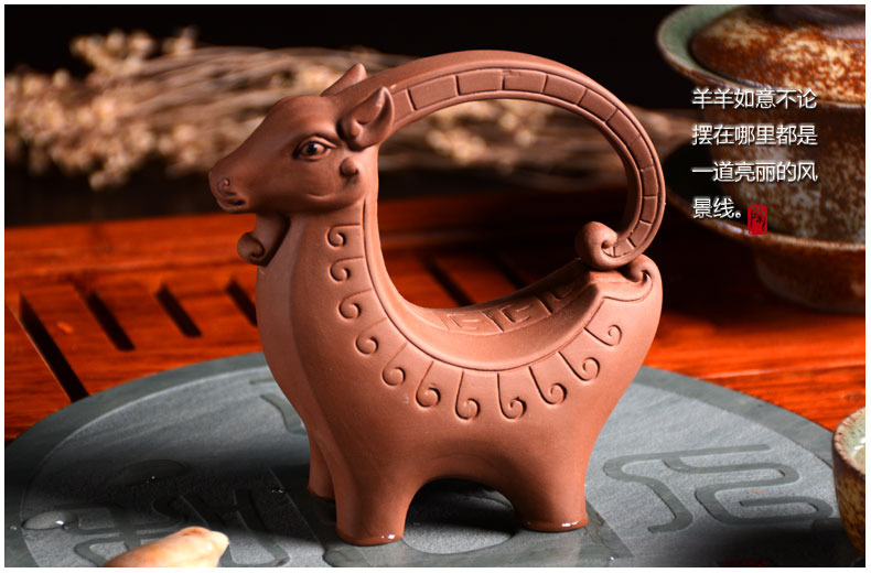 中號(寬14.5cm,15cm)陶迷陶泥茶寵擺件羊茶玩陶瓷工藝品茶具配角萌羊客廳擺件可養