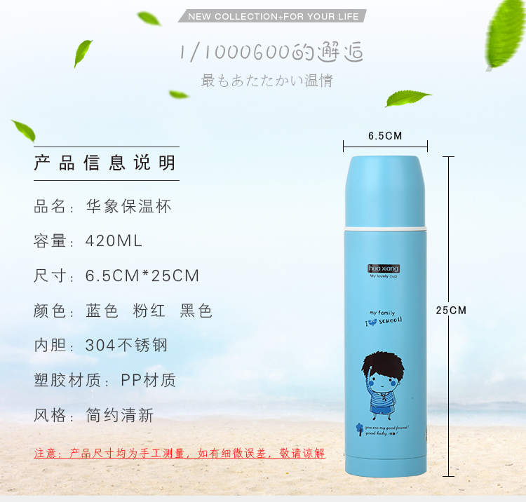 藍色不銹鋼保溫杯男女學生便攜水杯兒童戶外創意大容量真空車載茶杯子