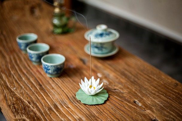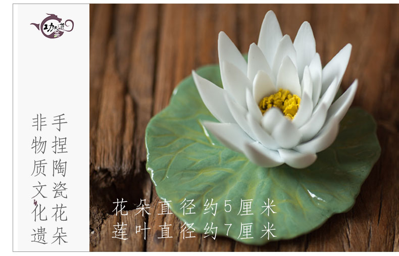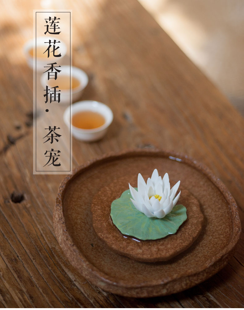 蓮青白荷禪意香插茶寵手捏陶瓷花朵擺件蓮花荷葉荷花陶瓷可養白蓮花睡蓮