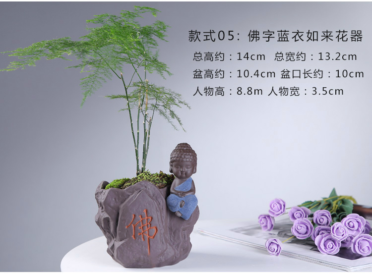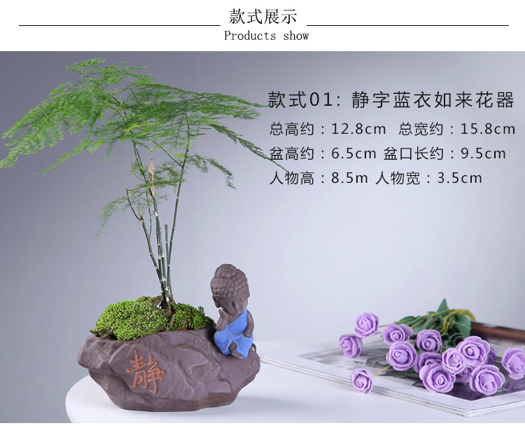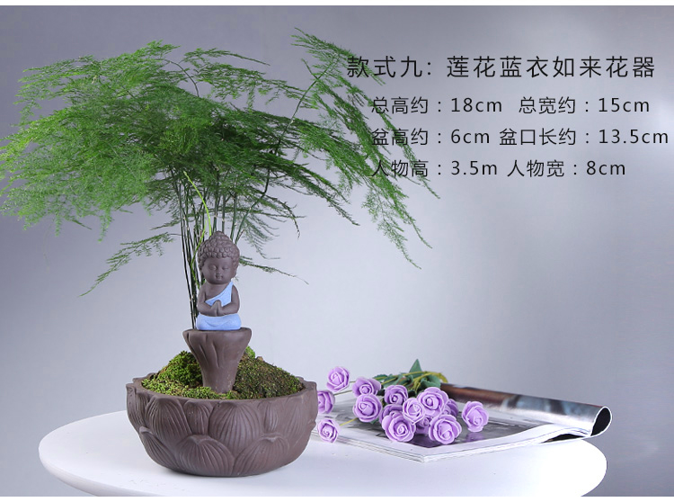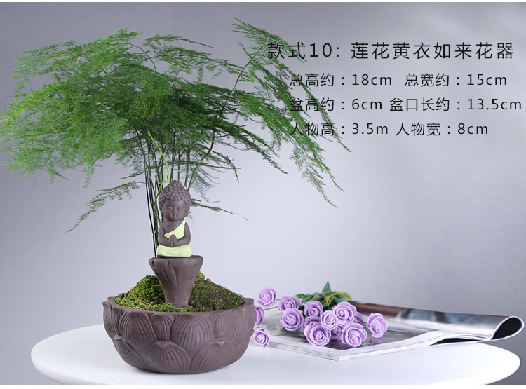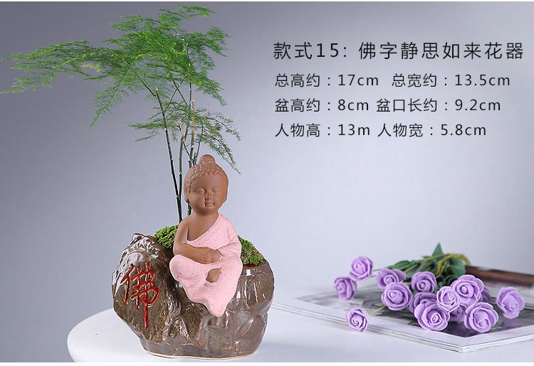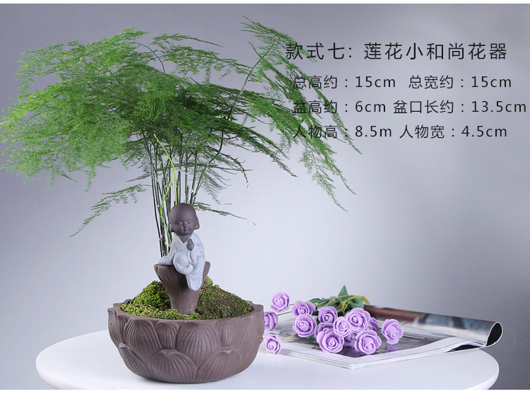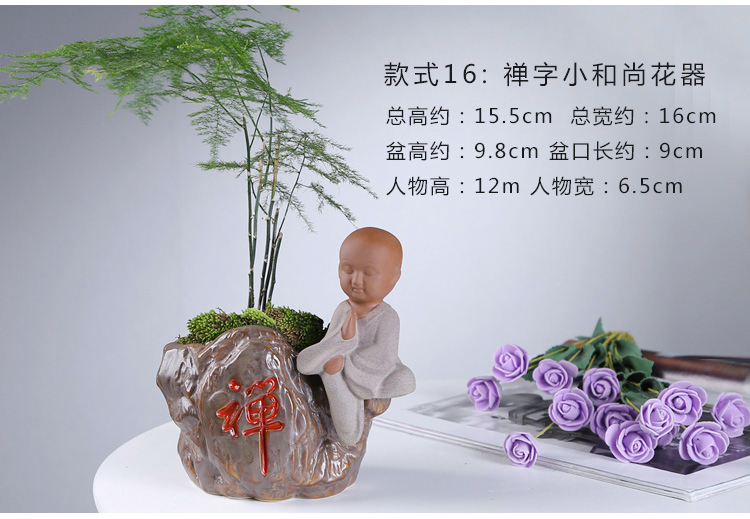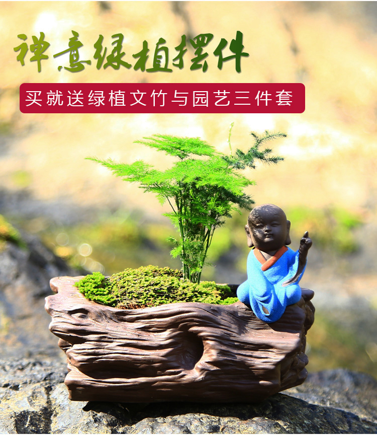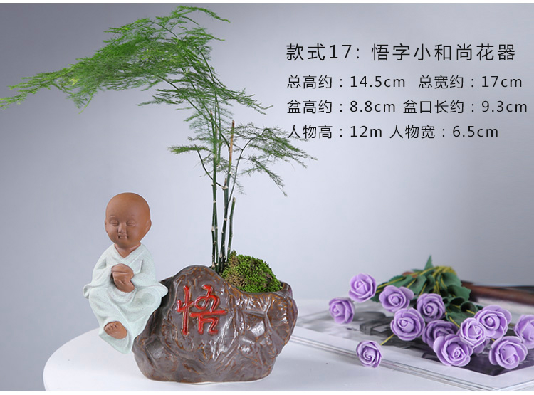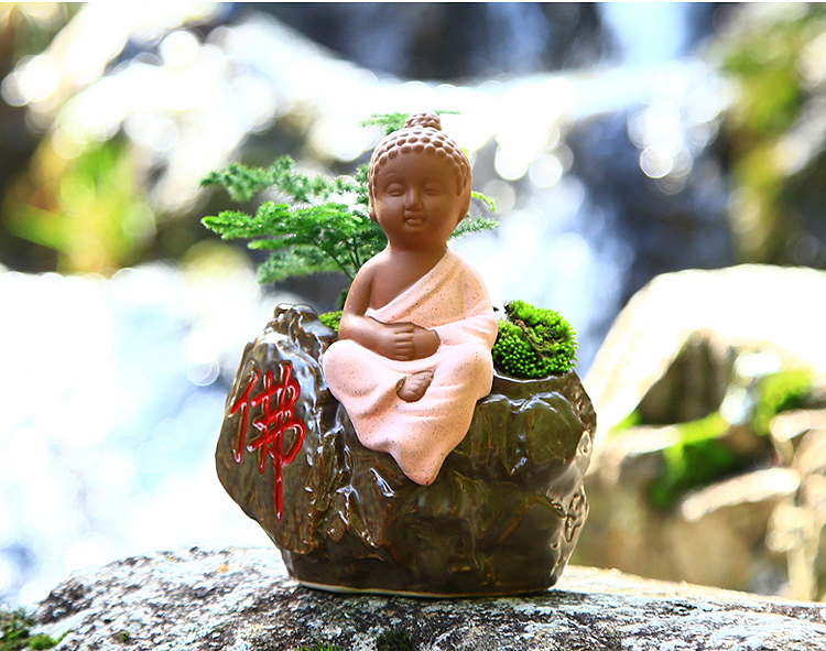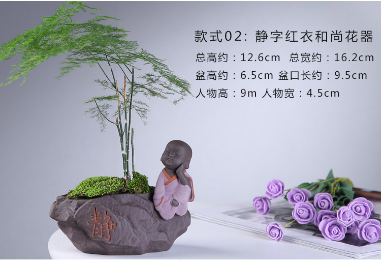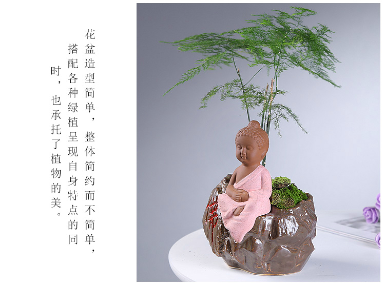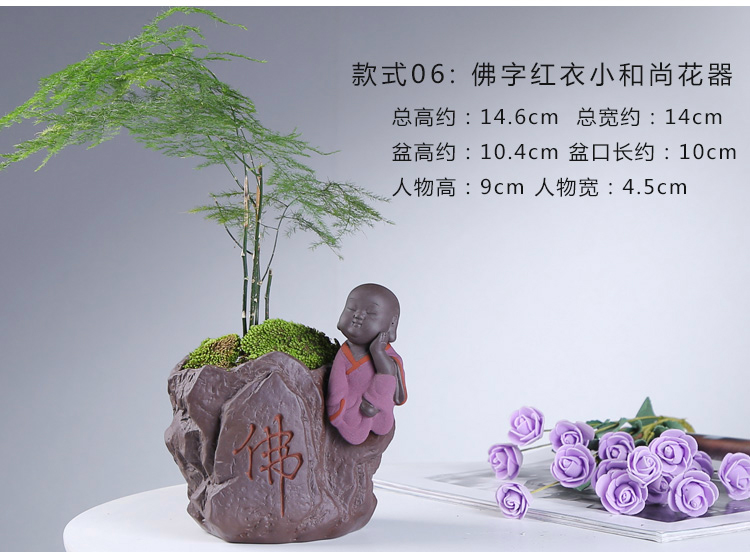 綠植茶寵擺件款一小和尚創意花盆紫砂茶寵擺件精品 可養家居飾品多肉植物盆栽禪意