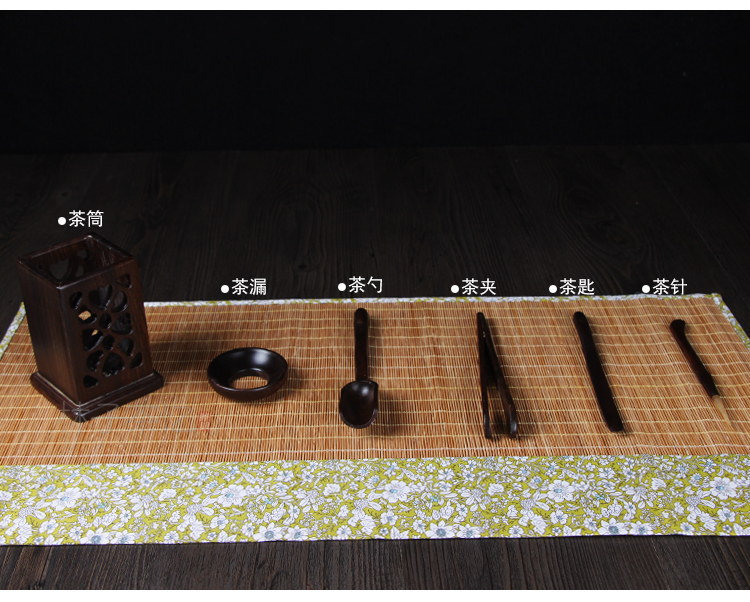 黑檀鏤空六君子茶道零配黑檀實木六君子茶藝六件套茶夾茶勺茶盤擺件功夫茶具配件