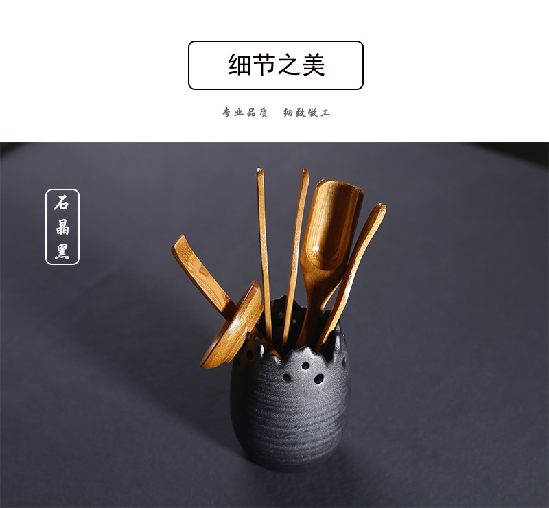 黑色茶道六君子套裝茶具配件竹功夫茶具配件茶夾茶勺茶藝擺件茶藝套組
