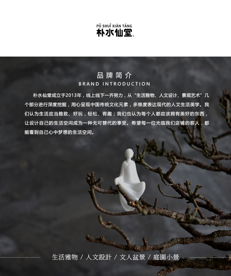 【品名】:樸小仙 【材質】:羊脂白玉瓷*1350高溫窯燒*無釉 【尺寸】:造型各異,尺寸約:高10.5cmx寬5.5cm,每個稍有不同,具體可參考詳情圖 【備注】:神游八極表,仙風道骨人。精品茶道、花道、香道古韻仙風擺件。等云臺因采用自然木制作,所以細節會各有不同,將隨緣,介意慎拍,如有特別需求請聯絡哦。 *友情提示:本購買鏈接不包含拍攝道具* 樸小仙的四個造型:隨心、空濛、靜思&澹遠
