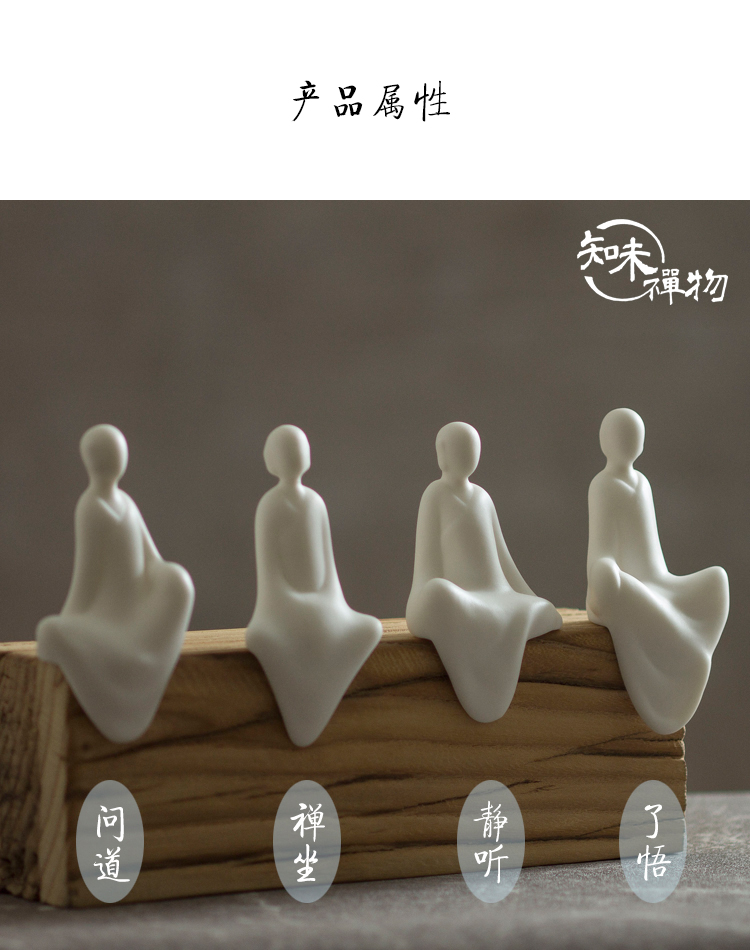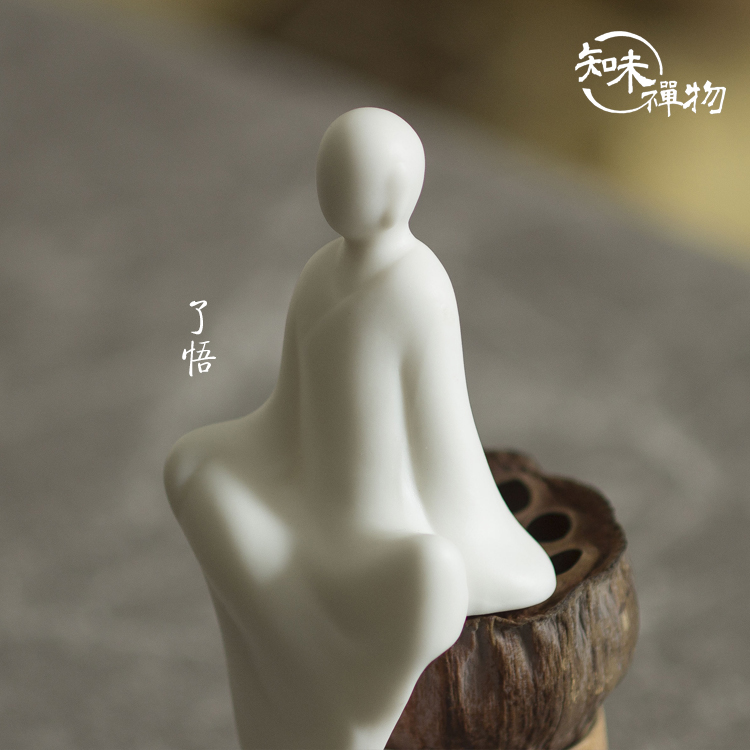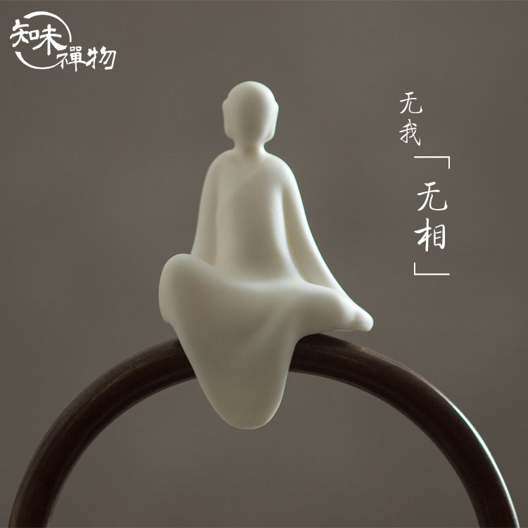 問道精品羊脂白陶瓷小和尚禪意人物茶寵擺件創意家居飾品茶道茶具配件