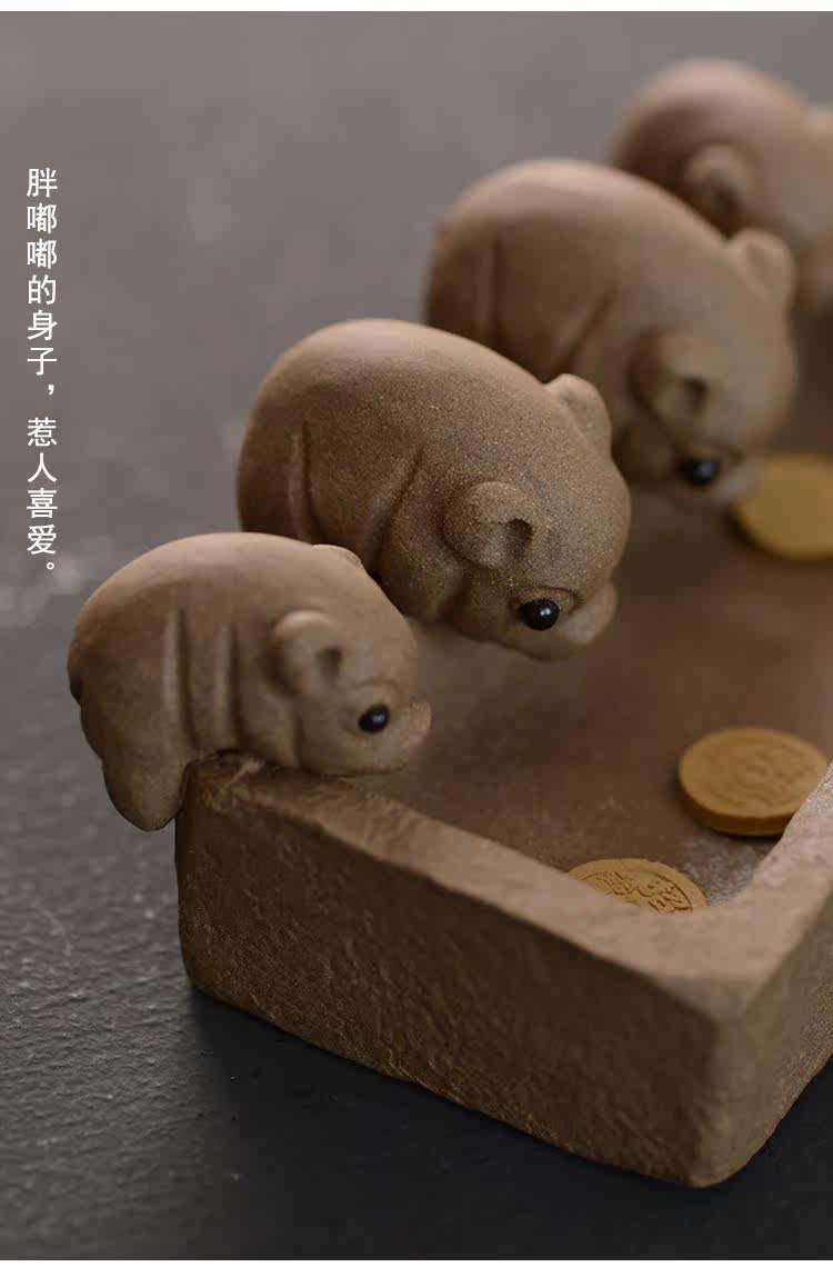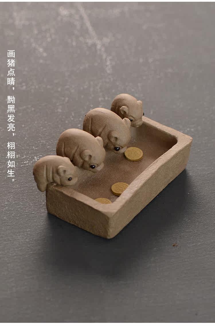 段泥小豬茶寵擺件紫砂茶寵擺件精品可養創意可愛小豬茶桌個性手工功夫茶具陶瓷飾品