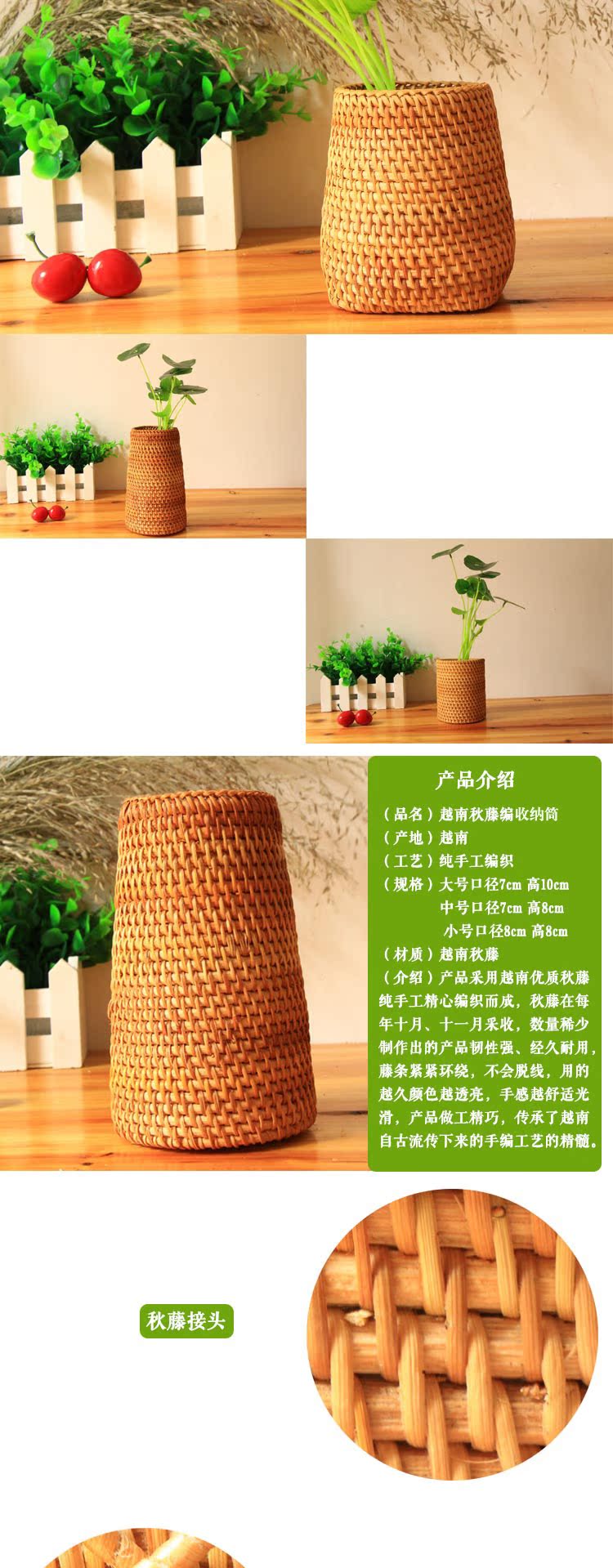 中號7*9*8越南秋藤美藤編收納茶筒手工茶具茶道現代六君子特色創意擺件茶簍