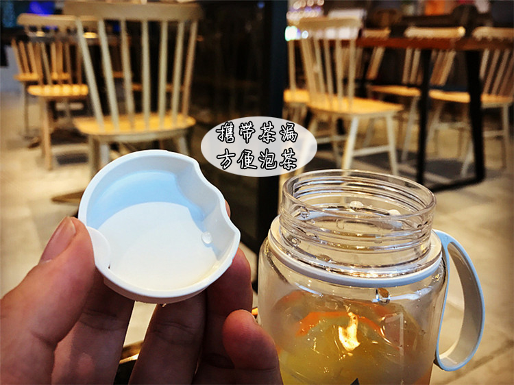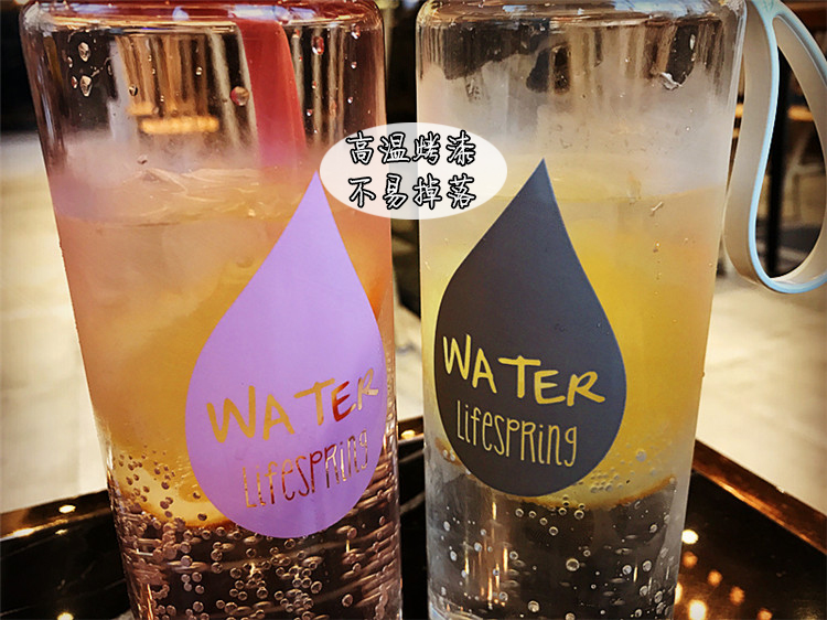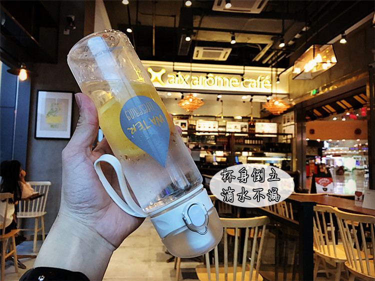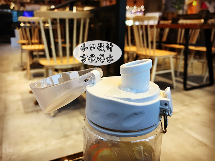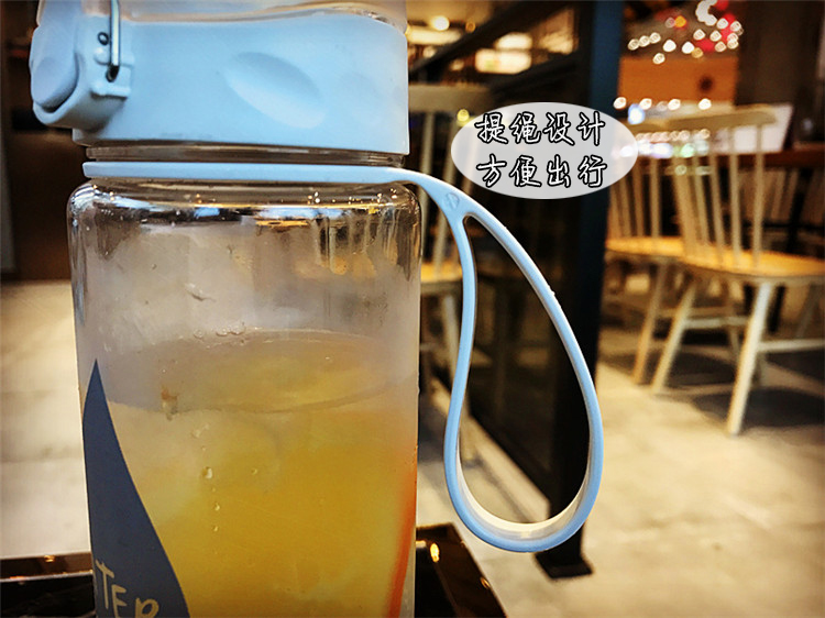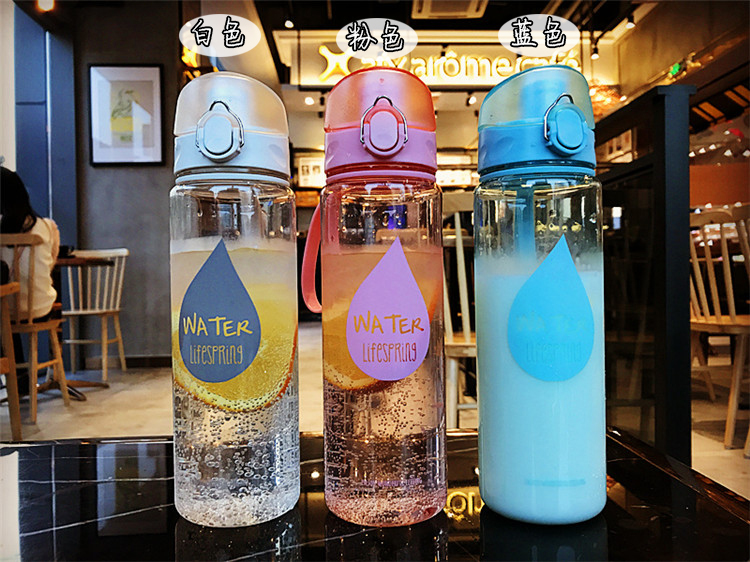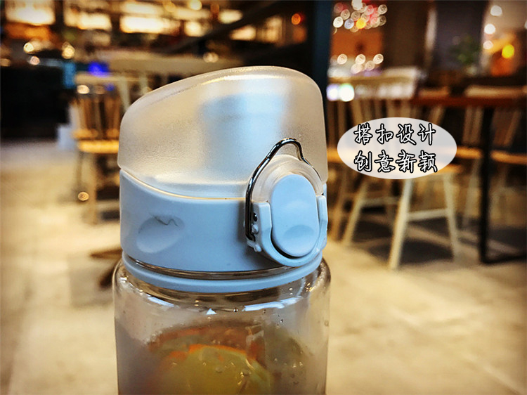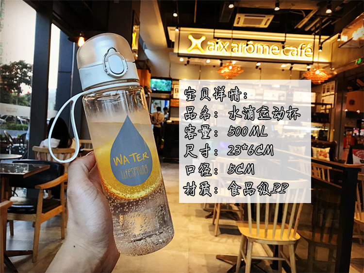 藍色水滴彈跳塑料杯+杯刷創意便攜運動彈跳蓋大容量塑料水瓶男女士透明車載防漏太空水杯子