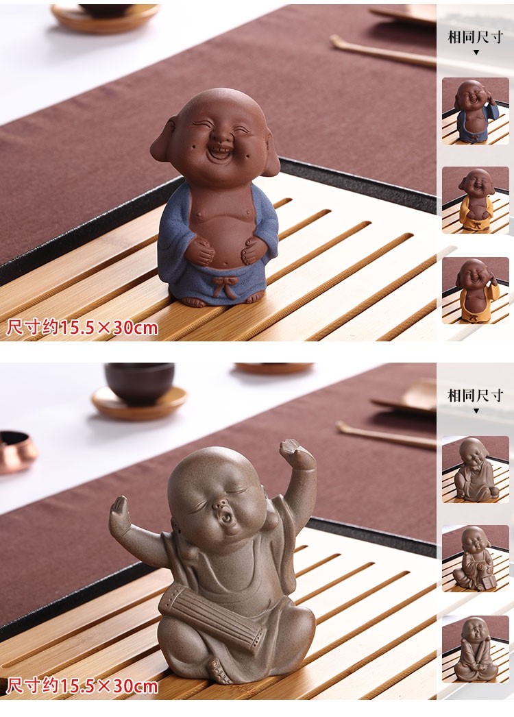 樂哉哈哈佛(-黃色)茶寵佛彩砂茶寵精品擺件茶道配件手工藝品紫砂擺件創意小和尚禮品