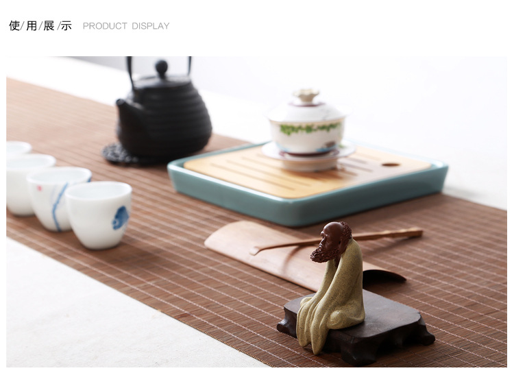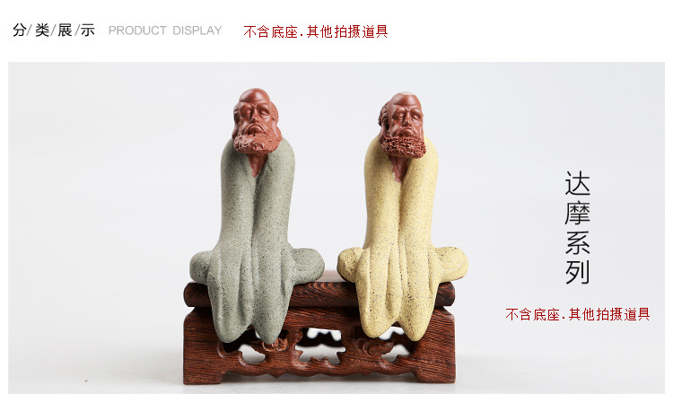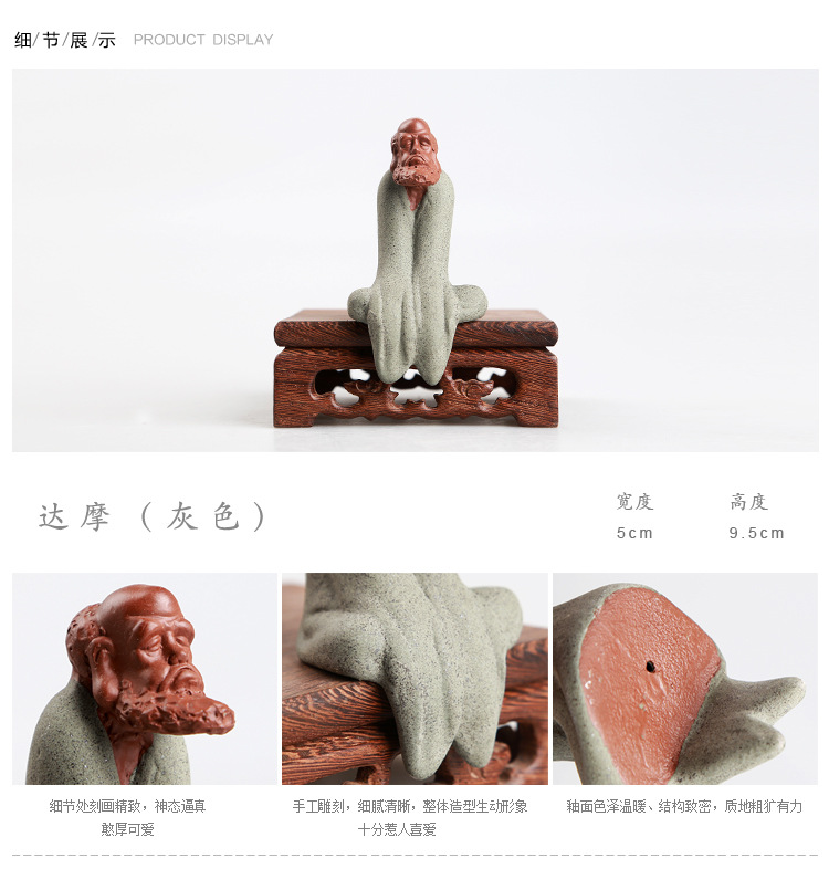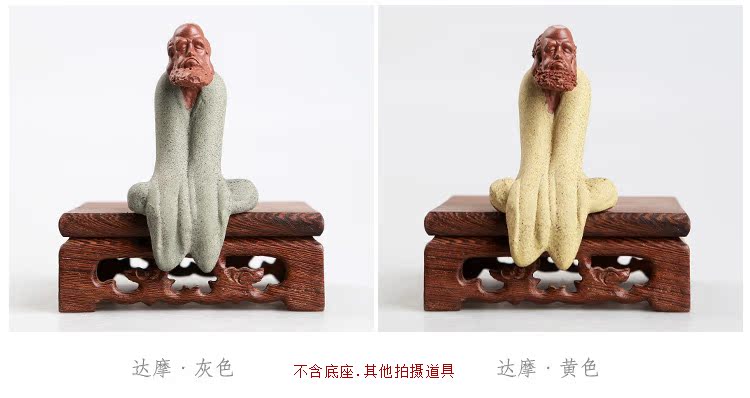 達摩 灰色(不含底座)唐興 茶寵擺件紫砂陶佛像人物茶玩擺件 彩砂達摩祖師茶寵精品擺件