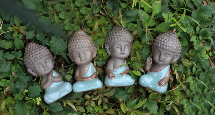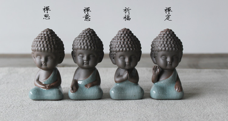 祈福(汝窯)茶寵擺件精品 可養紫砂佛像小和尚沙彌多肉花盆魚缸造景 禪意裝飾