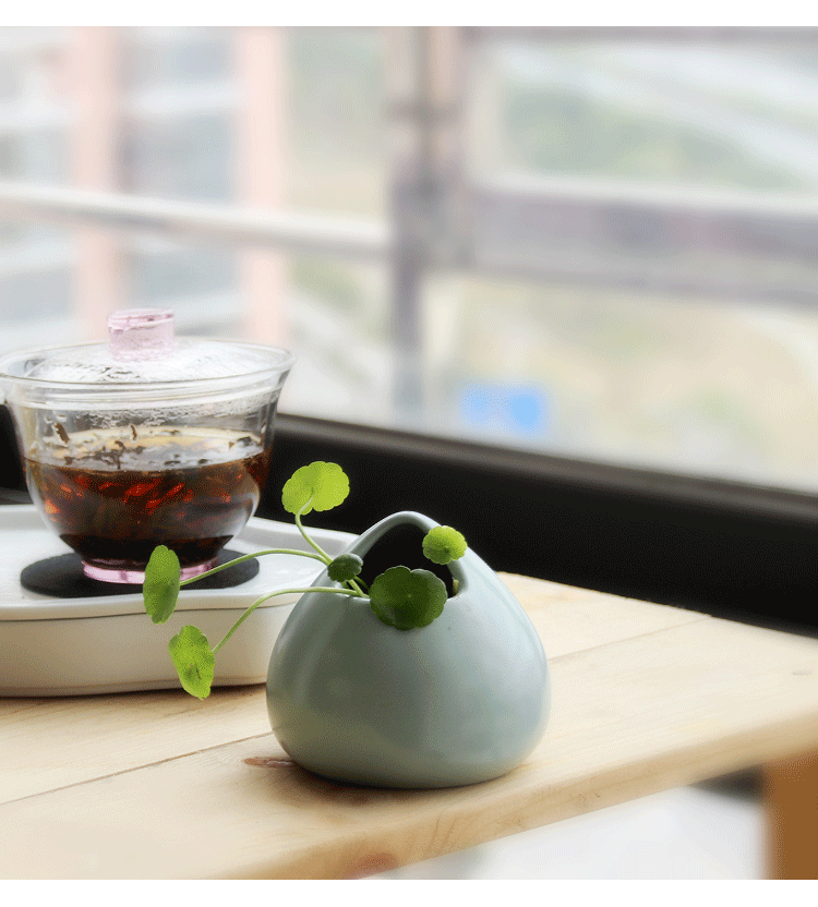 荷葉花器(小號哥窯梅子青冰裂)龍泉青瓷花瓶擺件客廳插花陶瓷水培容器綠蘿現代簡約家居創意裝飾