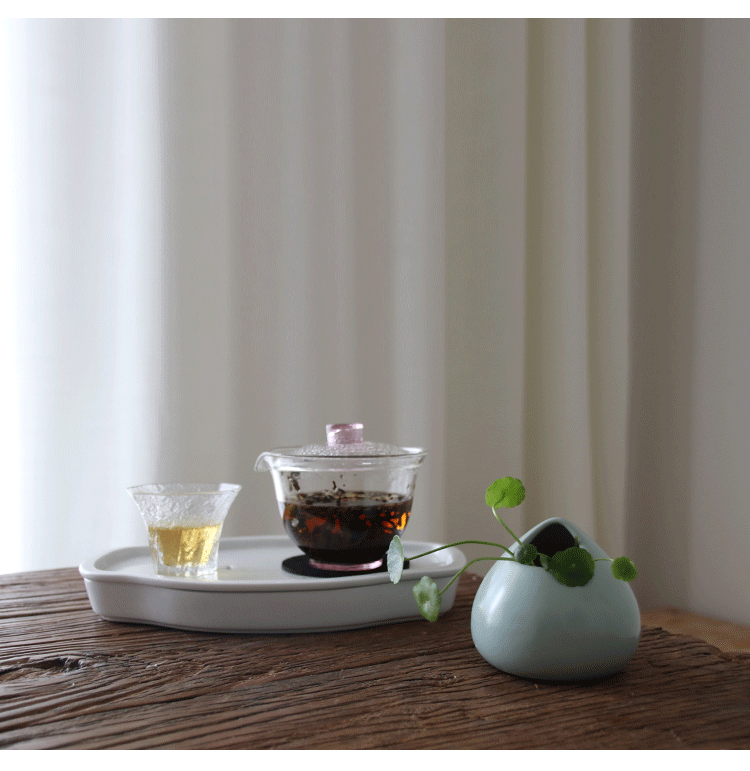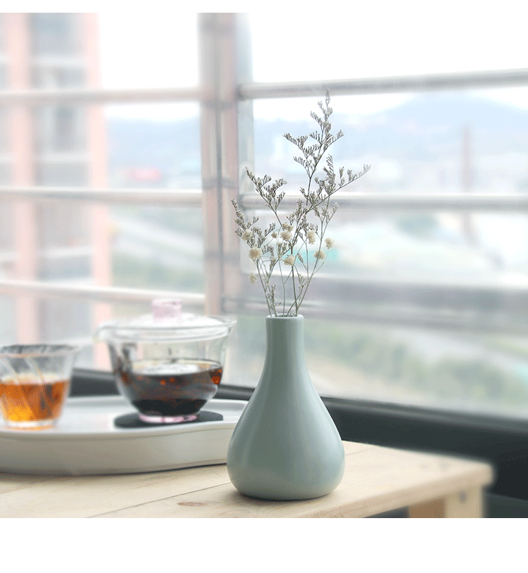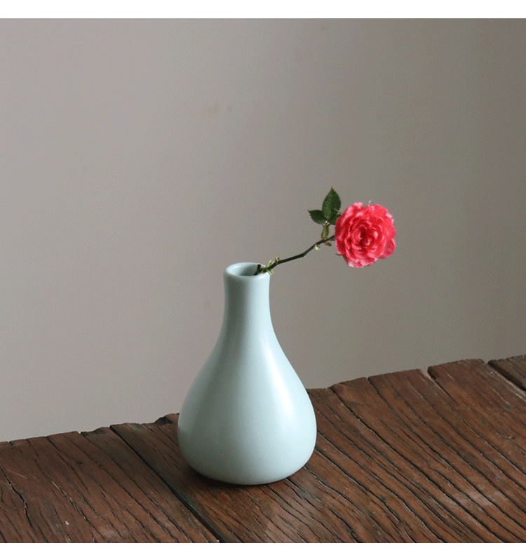 花瓶A日式簡約汝窯開片迷你素色陶瓷小花瓶茶具茶道茶臺擺件