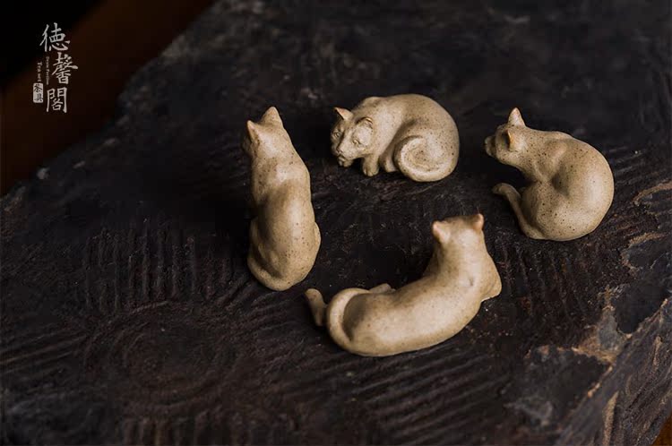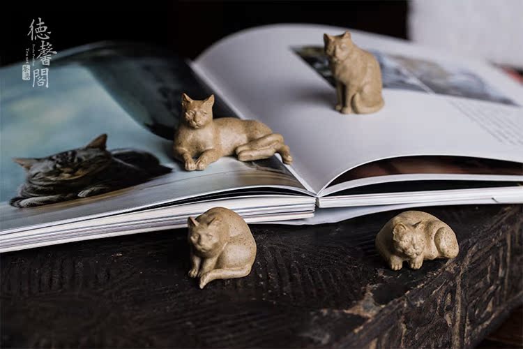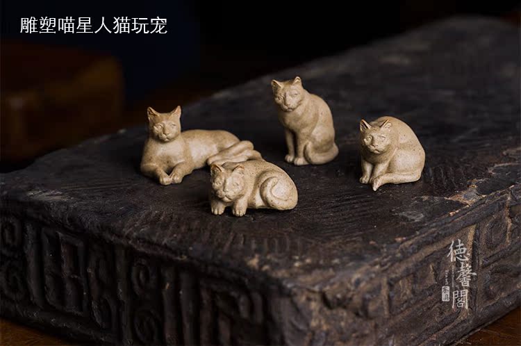 多多(高約2.5CM)景德鎮 全手工陶瓷雕塑喵星人貓玩寵 飾品手家居擺件紫砂茶寵茶具