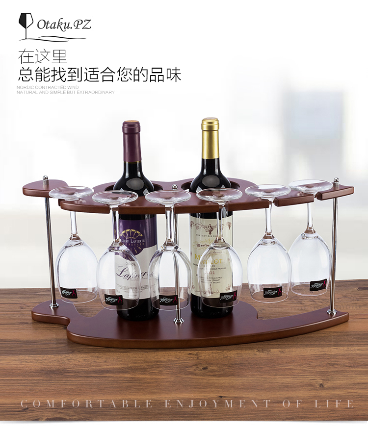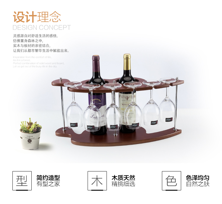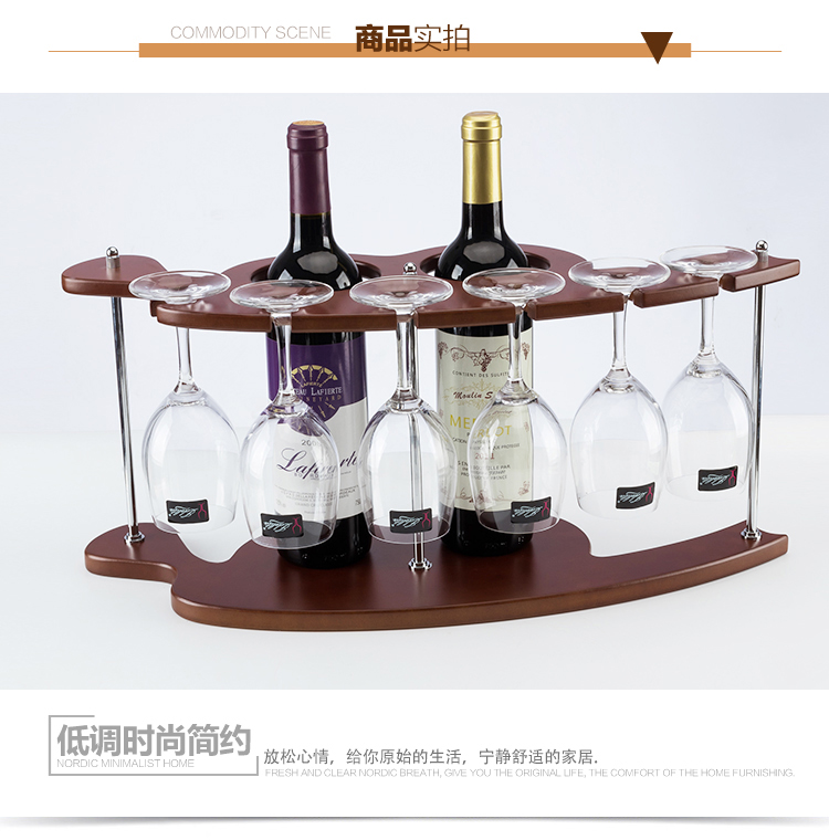 原木【棕】-FOUR【無酒杯】特價促銷原木酒架紅酒架創意歐式葡萄實木酒架酒杯架倒掛酒柜擺件