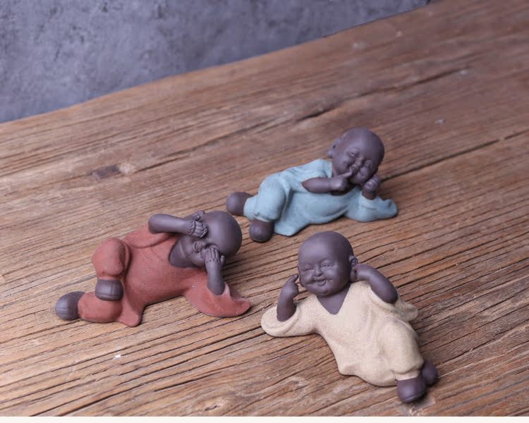 | 本公司大部分商品6一10天到貨。不接急單。急單的客戶請不要下單。感謝諒解與合作! 【品名】:三不擺件躺款 【材質】:紫砂彩砂陶 【尺寸】:寬約12.8cm 高約5.7cm 手工測量,難免誤差,尺寸僅為參考,一切以實物為準 【包裝】:禮品包裝 【三不真理】: 孔子曰:“非禮勿視,非禮勿聽,非禮勿言,非禮勿動。”也就是不當看的不看,不當聽的不聽,不當說的不說。這“三不小和尚”似乎隱喻著謹慎為善,與世無爭的處世性格,也切合佛家所秉承超然處世的思想境界。雖然,我們生活中還存在著許多黑暗面,但陽光總是燦爛的,人心終究是向善的,對于那些看錯了,聽錯了,說錯了的人,人們仍舊寬容、熱情、真誠地接納他們,希望做到“不看卑鄙齷齪,不聽流言蜚語,不說黑白是非”足矣。 【保障】:每一份訂單,我們均已為您購買了險。 【推薦】:搭配禮盒裝,送禮首選。開業、喬遷、開學禮品,寓意美好。