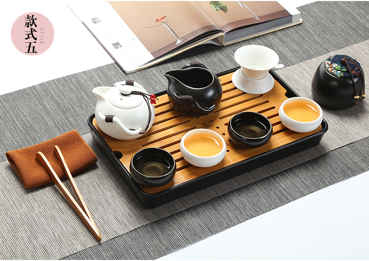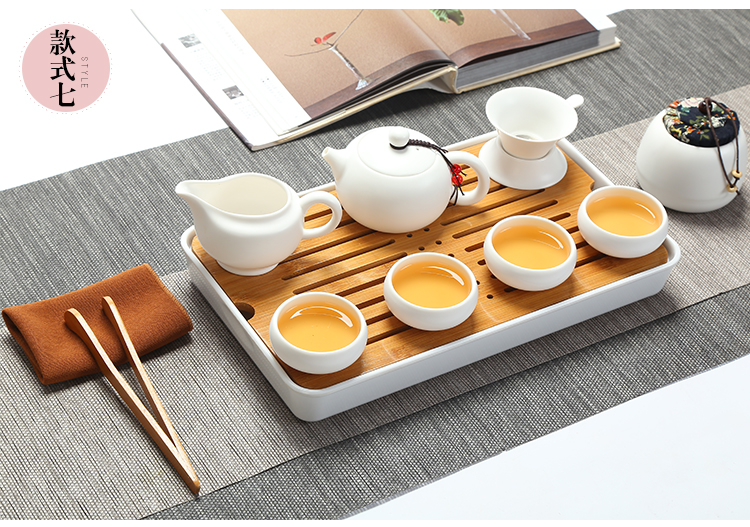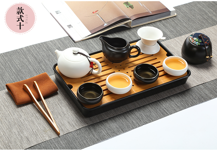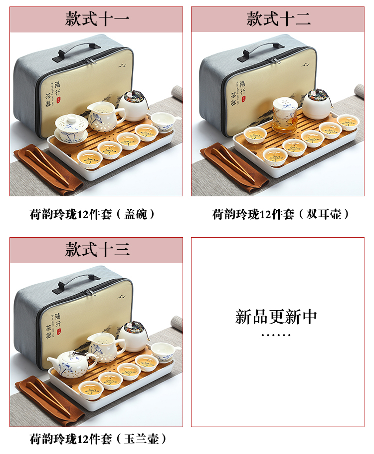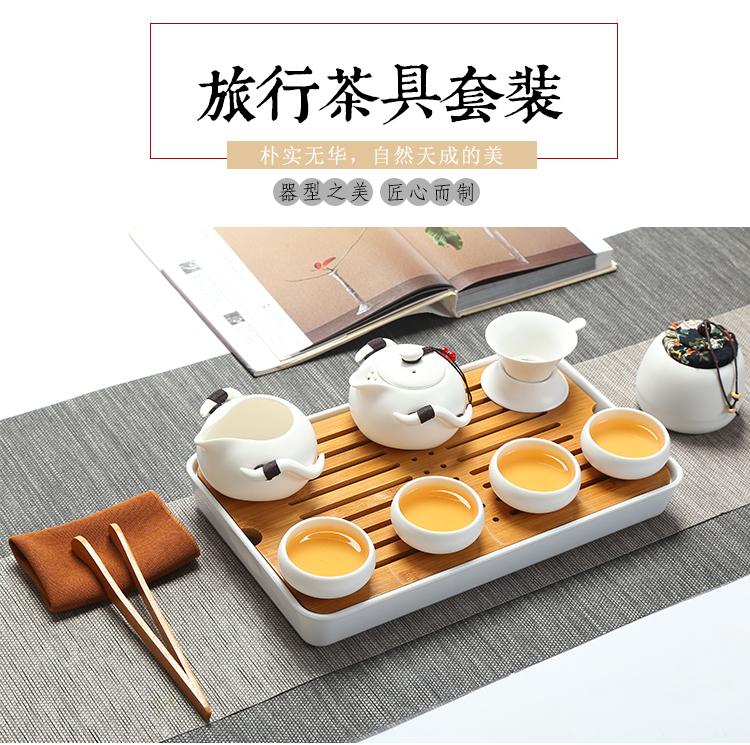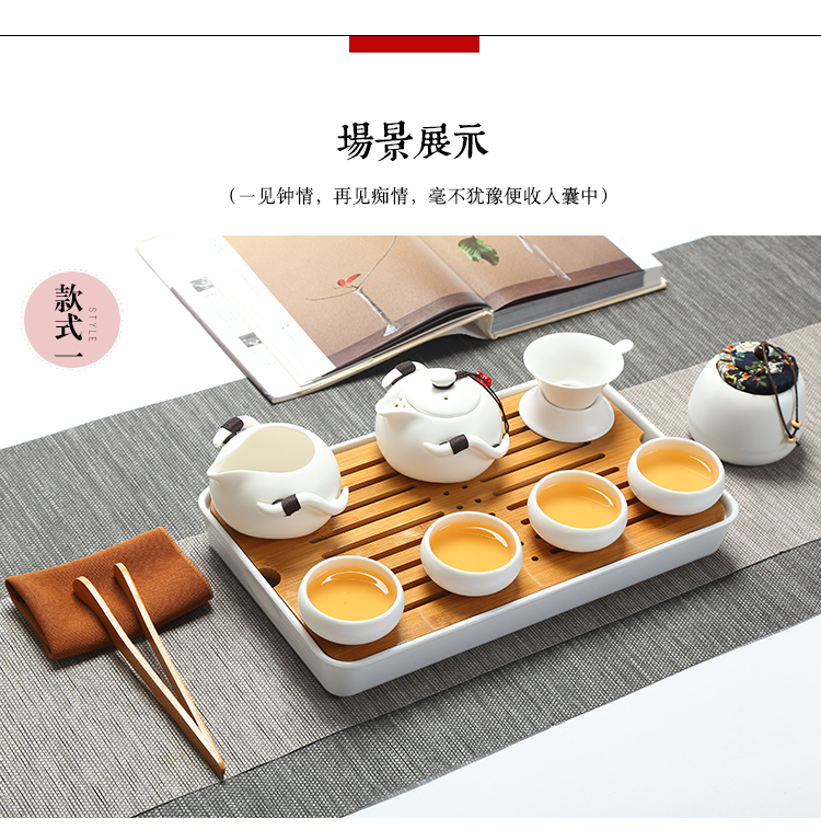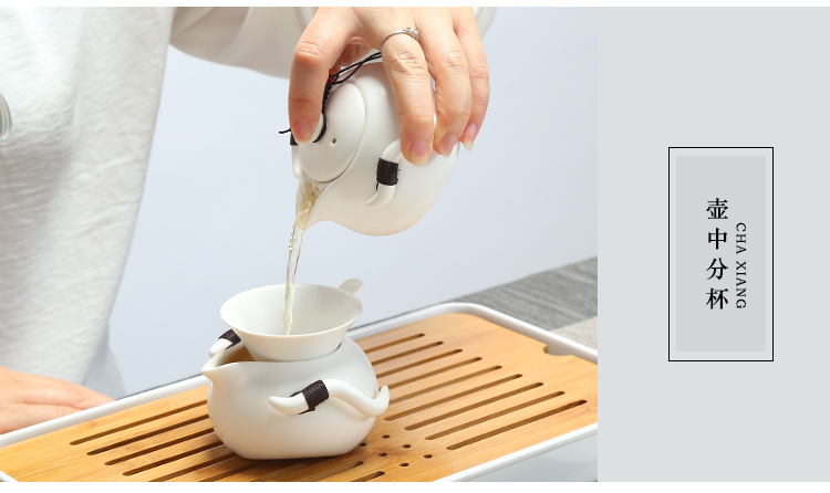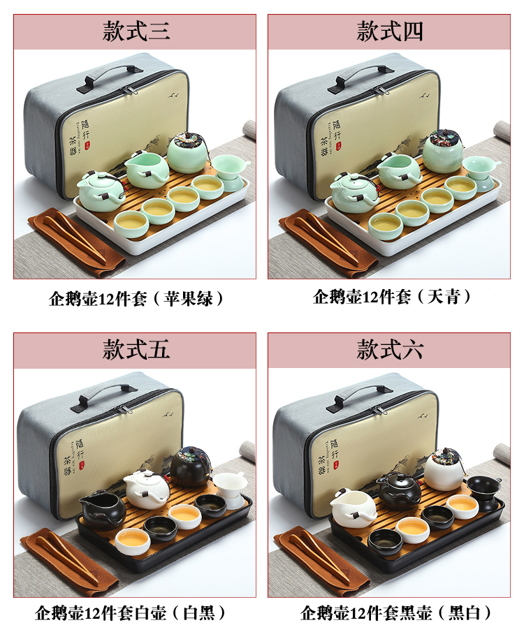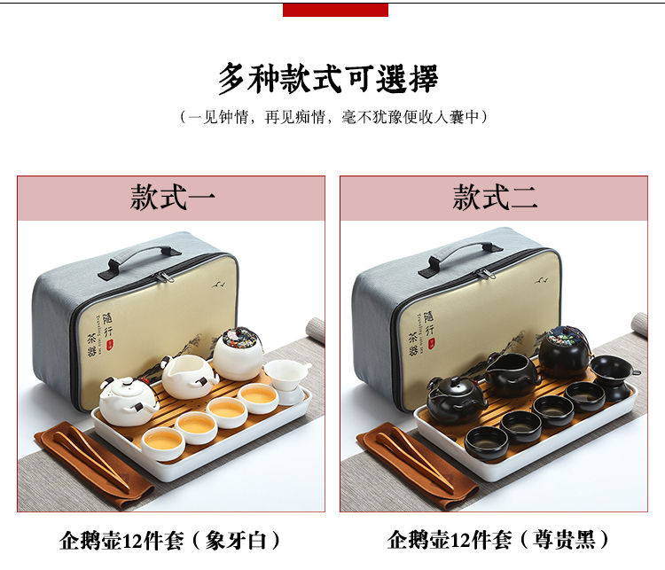款式一企鵝壺12件套(象牙白)陶瓷旅行便攜式功夫茶具套裝家用茶杯茶盤辦公快客壺車載隨行