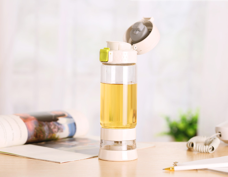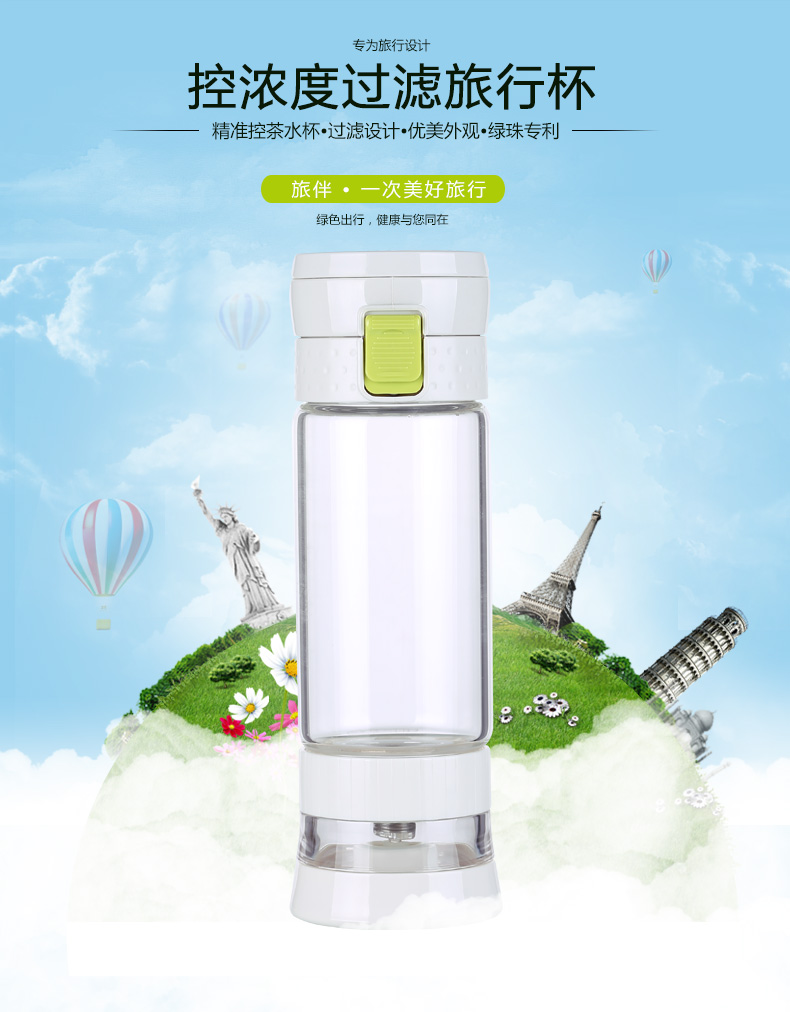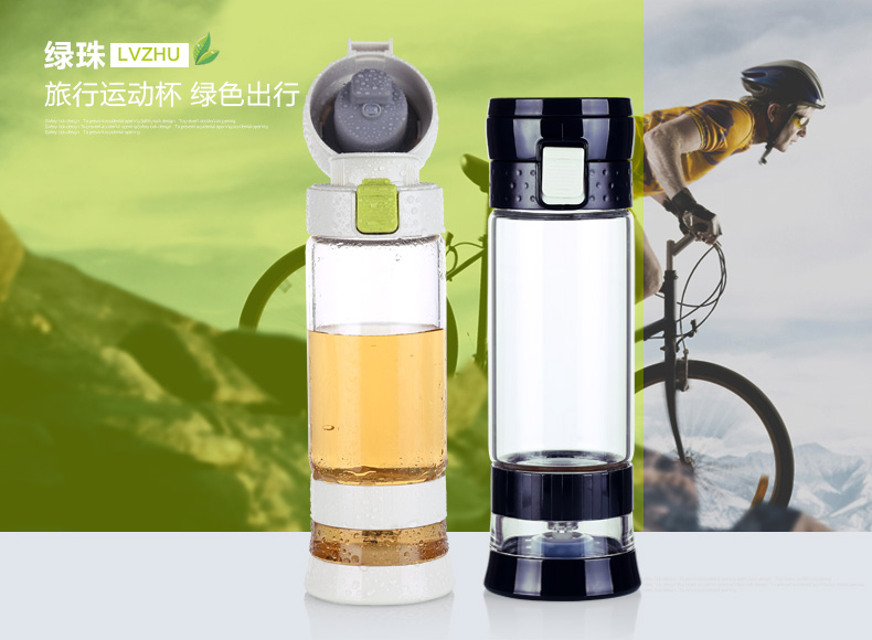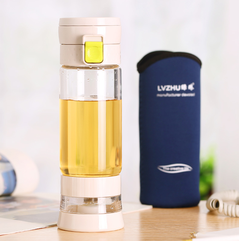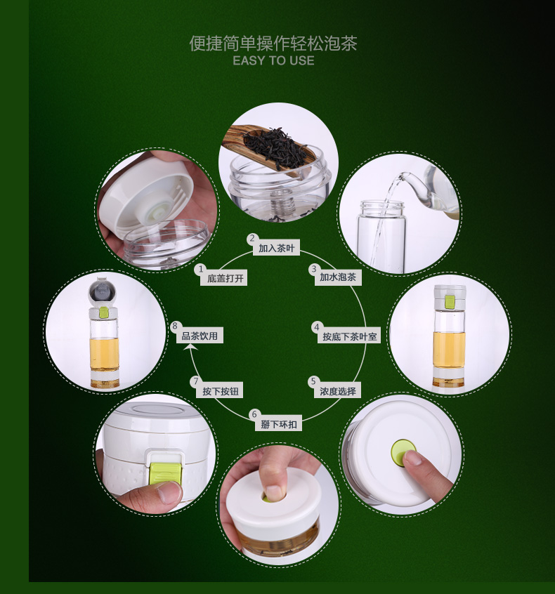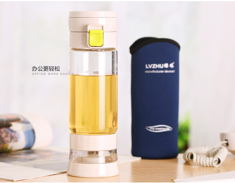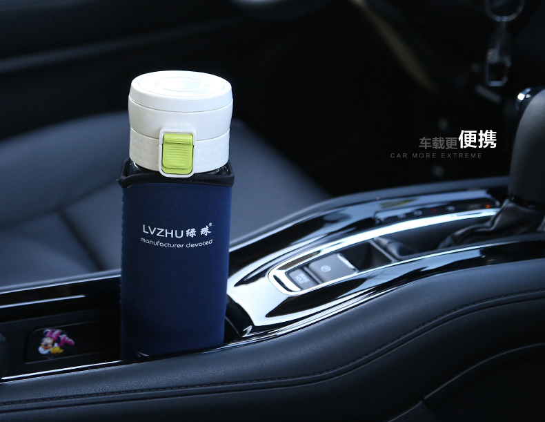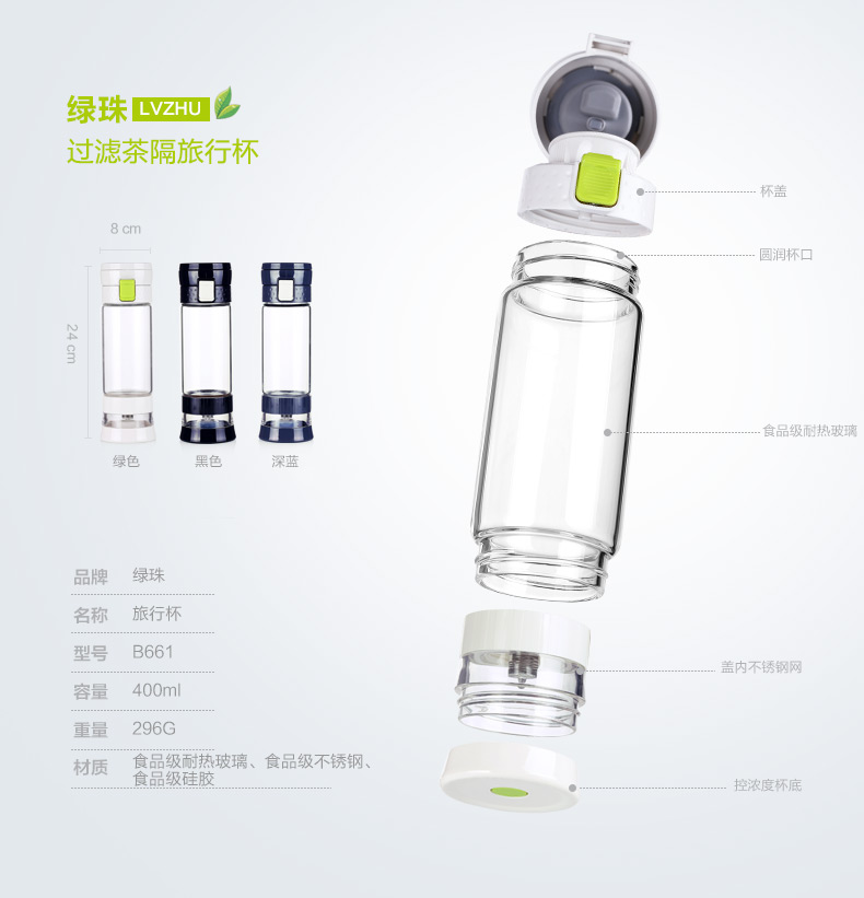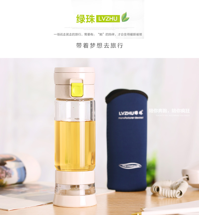 深藍色(送杯套)綠珠雙層玻璃杯子創意泡茶杯耐熱車載杯子透明水杯過濾茶水分離杯